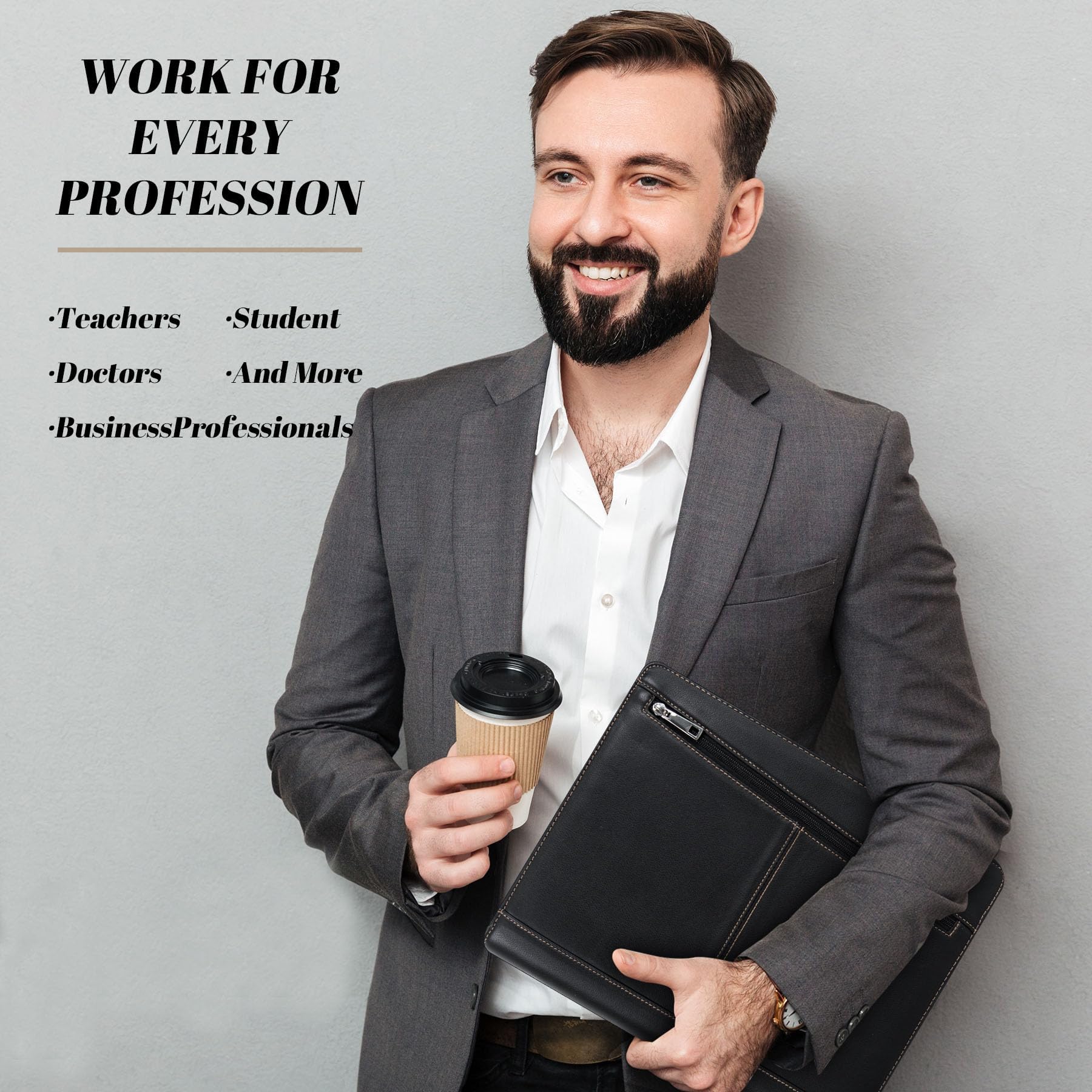 ➤ VERSATILITY - This work bag is extremely versatile and perfect for a variety of occasions and needs: whether as a notepad holder, laptop bag, conference folder, writing folder, it is at home everywhere. It is also great as a leather binder, folder, student folder, lawyer folder, as well as for all types of business folders and teacher bags. One bag for all your needs.