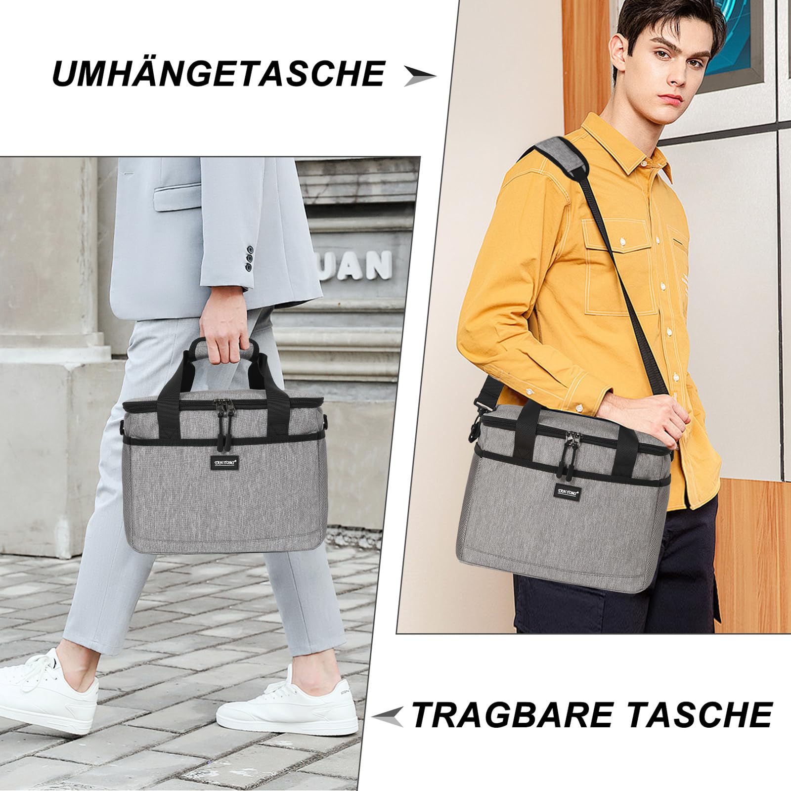 CALIYO Cooler Bag 15L Foldable & Portable with Zipper - Lunch Bag for Men and Women, Insulated Lunch Tote for Work, School, Picnic, Travel - 3 Sizes: 8.5 L / 15 L / 24 L (Grey)