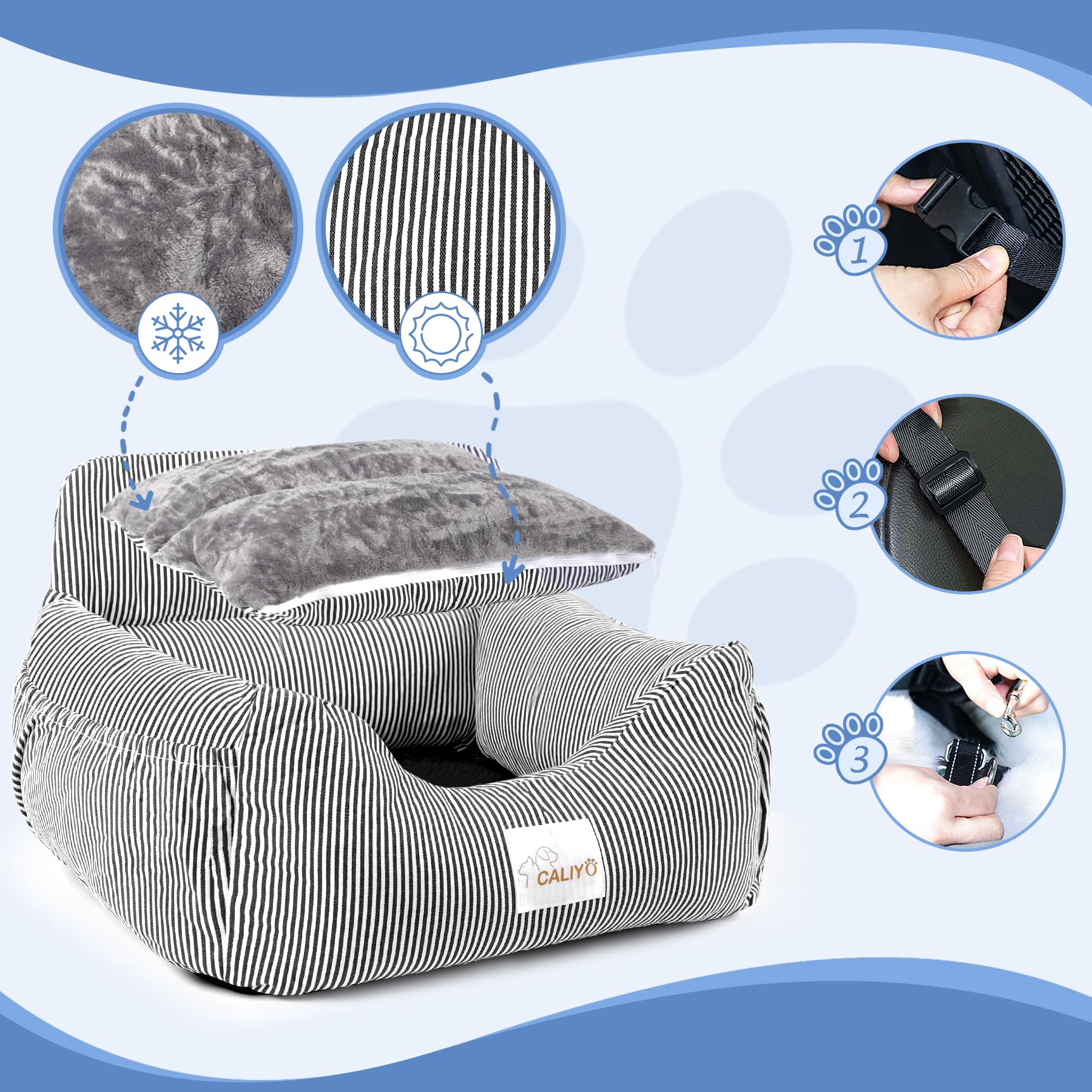 CALIYO dog car seat with sturdy base & safety belt | dog car seat for small up to 10 kg | memory foam seat cushion | waterproof, washable dog basket with storage bag (black/white)