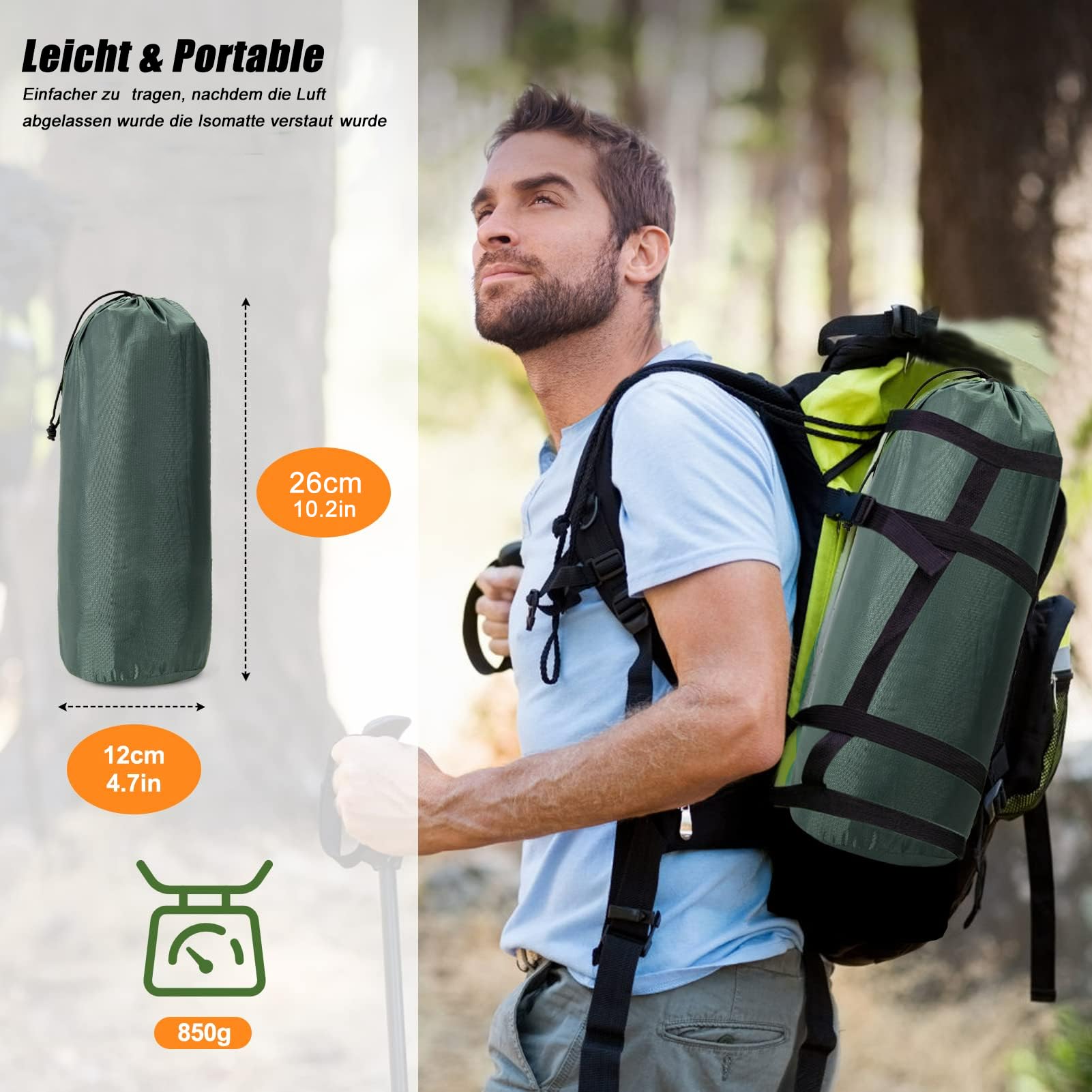 "Ultralight and Space-saving: This outdoor camping mat is an ideal tent mattress for camping, hiking, festival trips, and our mat can be rolled up and fits into your backpack without taking up much space.",