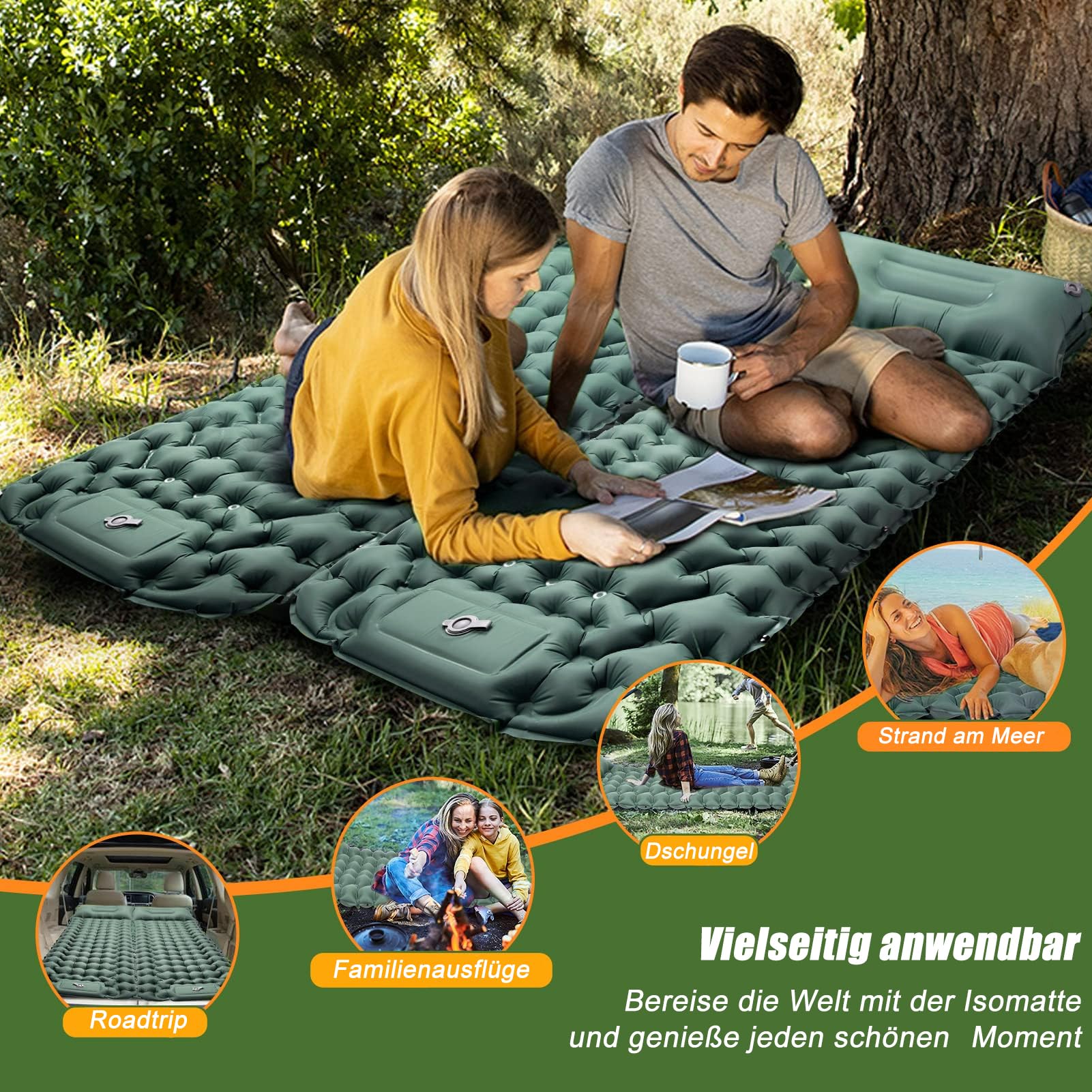 CALIYO self-inflating camping mat 2pcs - thickened air mattress with foot pump, ultralight & waterproof | integrated pillow, compact size for outdoor, hiking, tents & travel