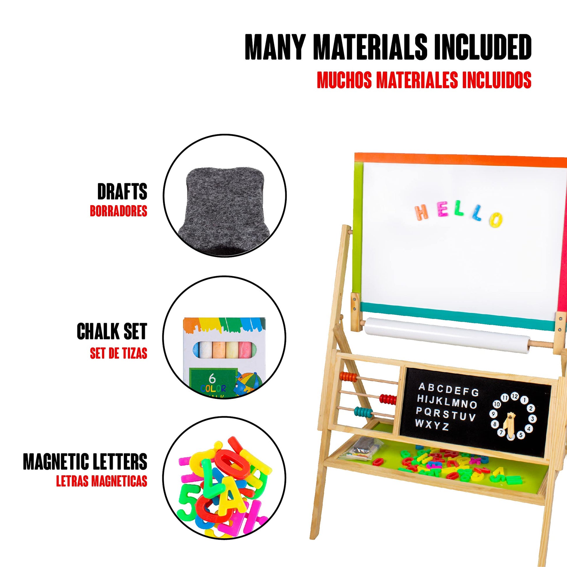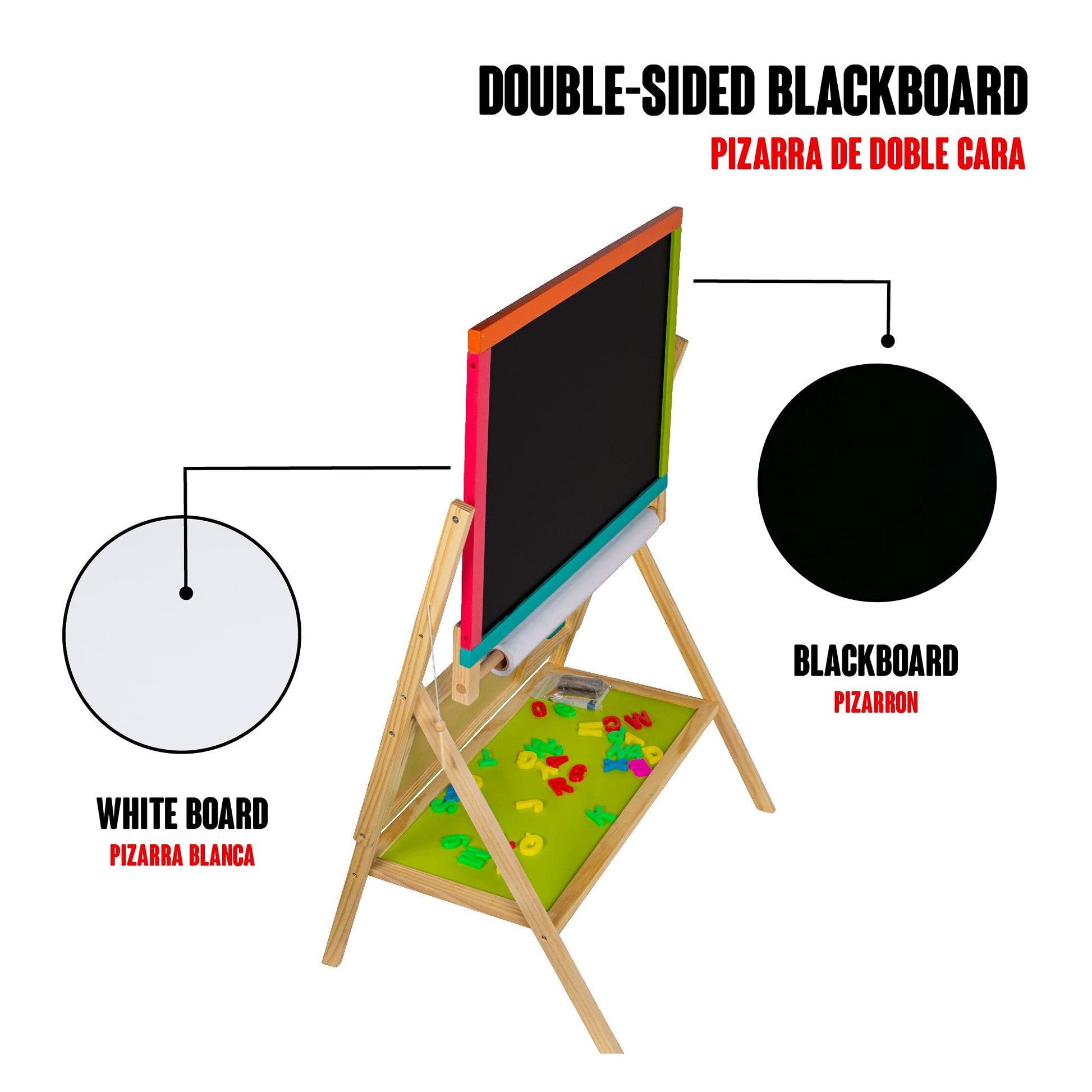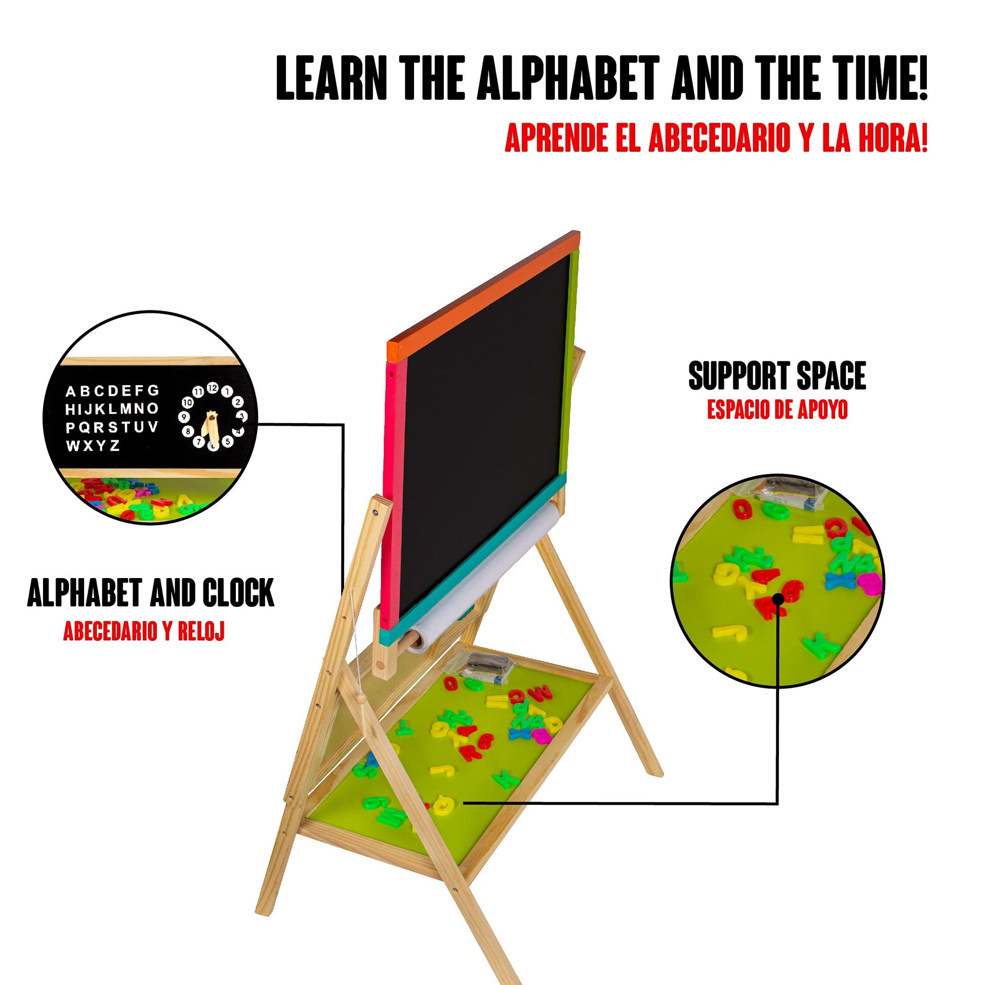 "Enjoy learning: This 2-in-1 chalkboard is perfect for kids to learn and have fun - unleash their creativity while learning new things and being entertained for hours!"]