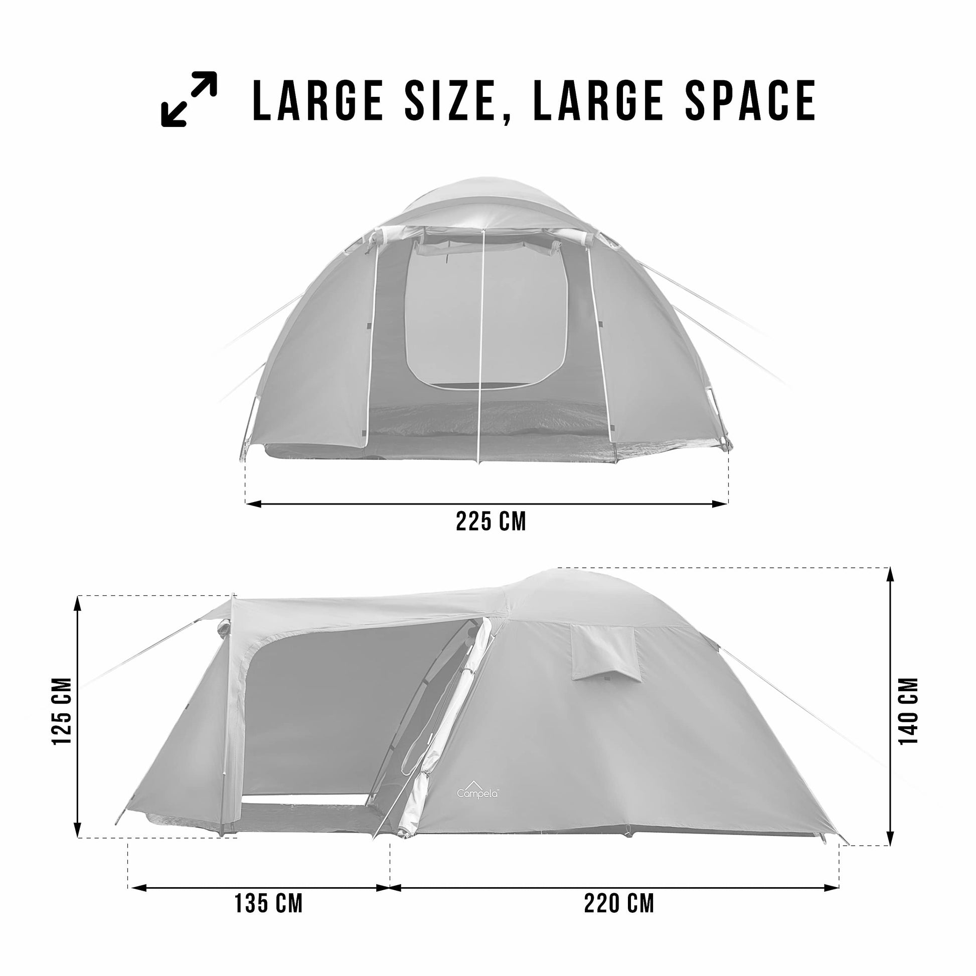 Campela 3 4 person tent waterproof 3000mm with vestibule & mosquito net - camping tent family tent for outdoor, festival, hiking, vacation - quick setup tunnel tent with ventilation