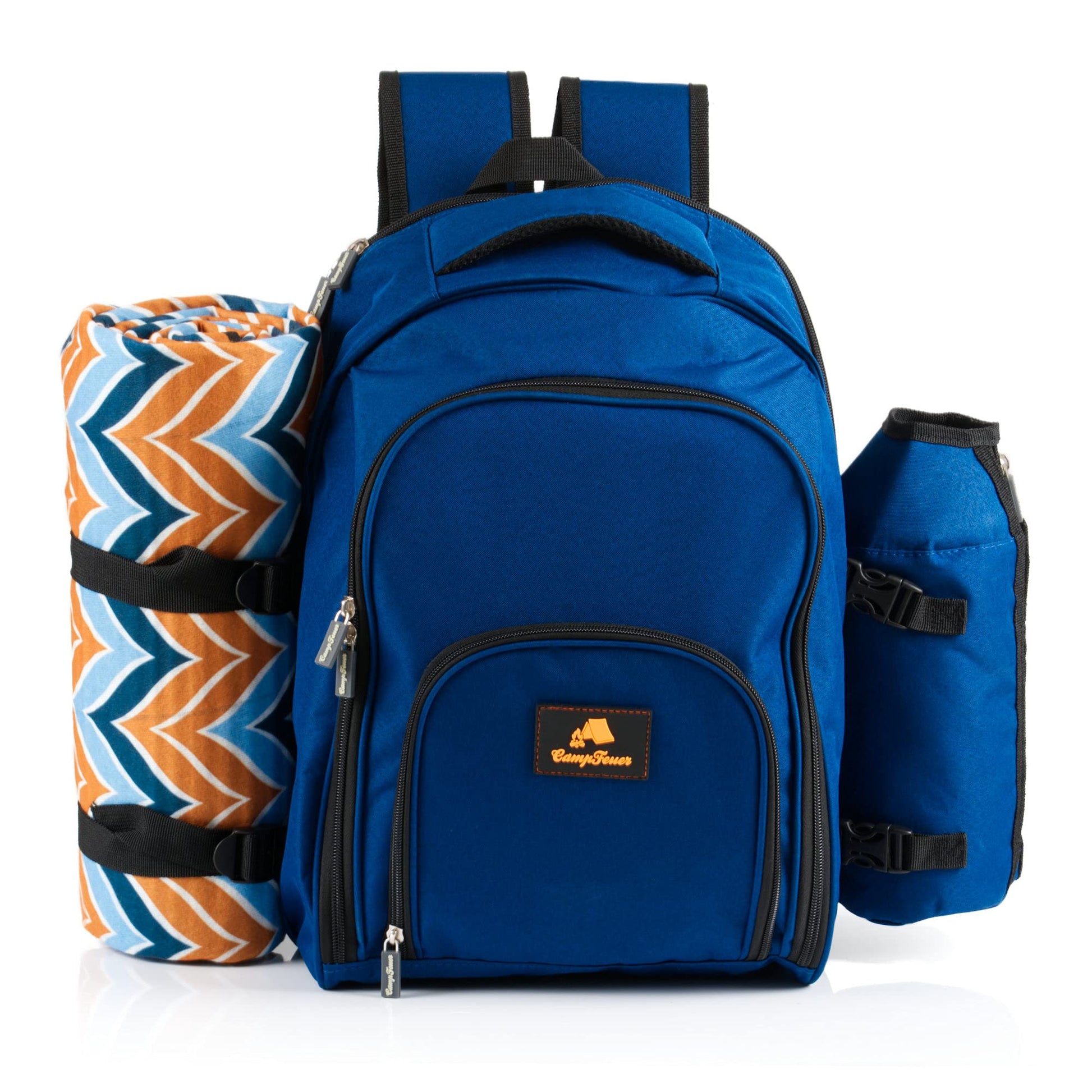 CampFeuer picnic backpack 32-piece | Picnic set for 4 people | Blue | with bottle holder, picnic blanket, cooler compartment, and camping dishes | Leisure backpack, camping backpack