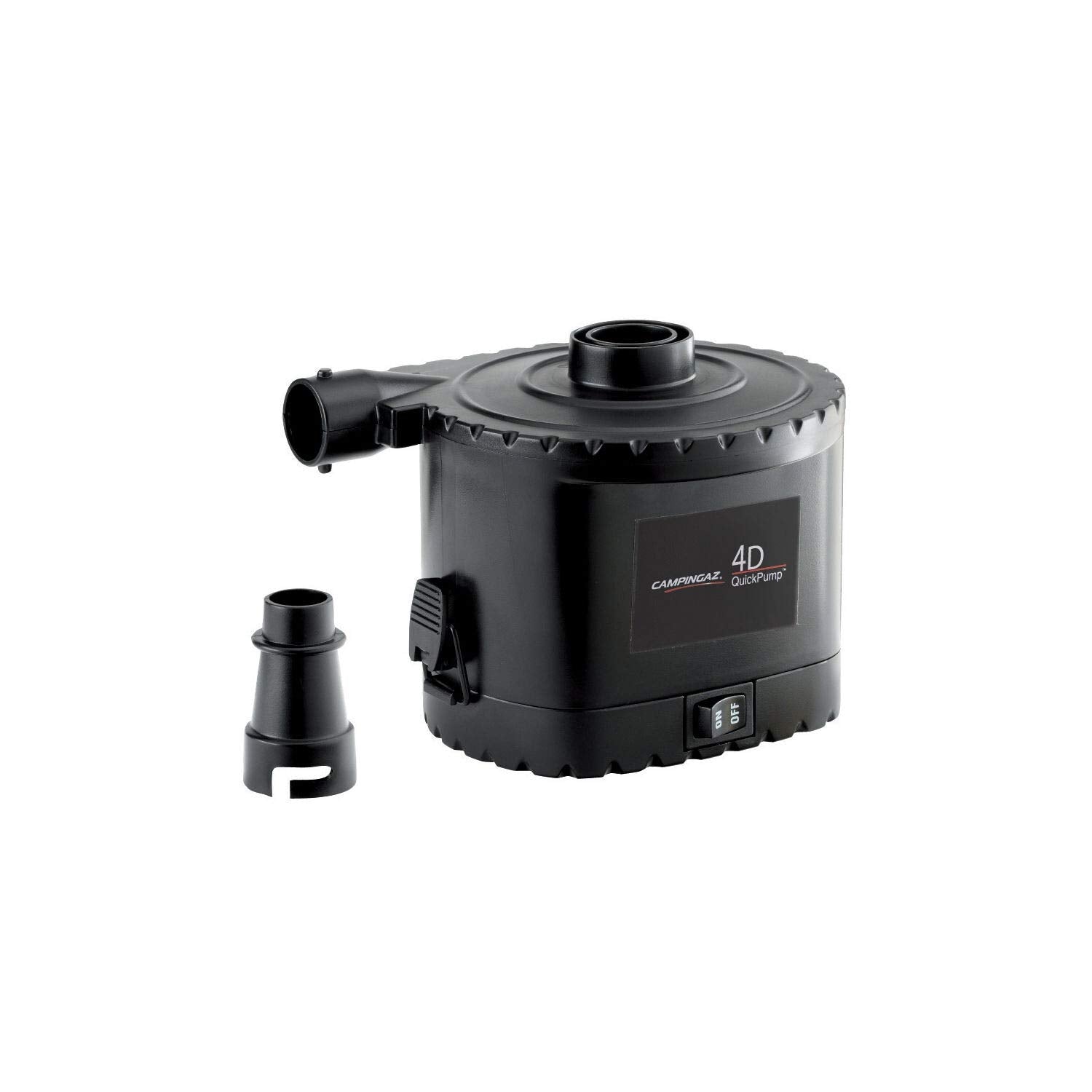 ["2 Functions: inflate and deflate; Easy to store","Ergonomic cordless design; Air flow: 340 liters per minute","Operates with standard type D batteries or rechargeable batteries; Operating pressure: 27 mbar","With double lock valve for Campingaz and Coleman airbeds","Includes: Campingaz 203144 4d Quickpump, black"]