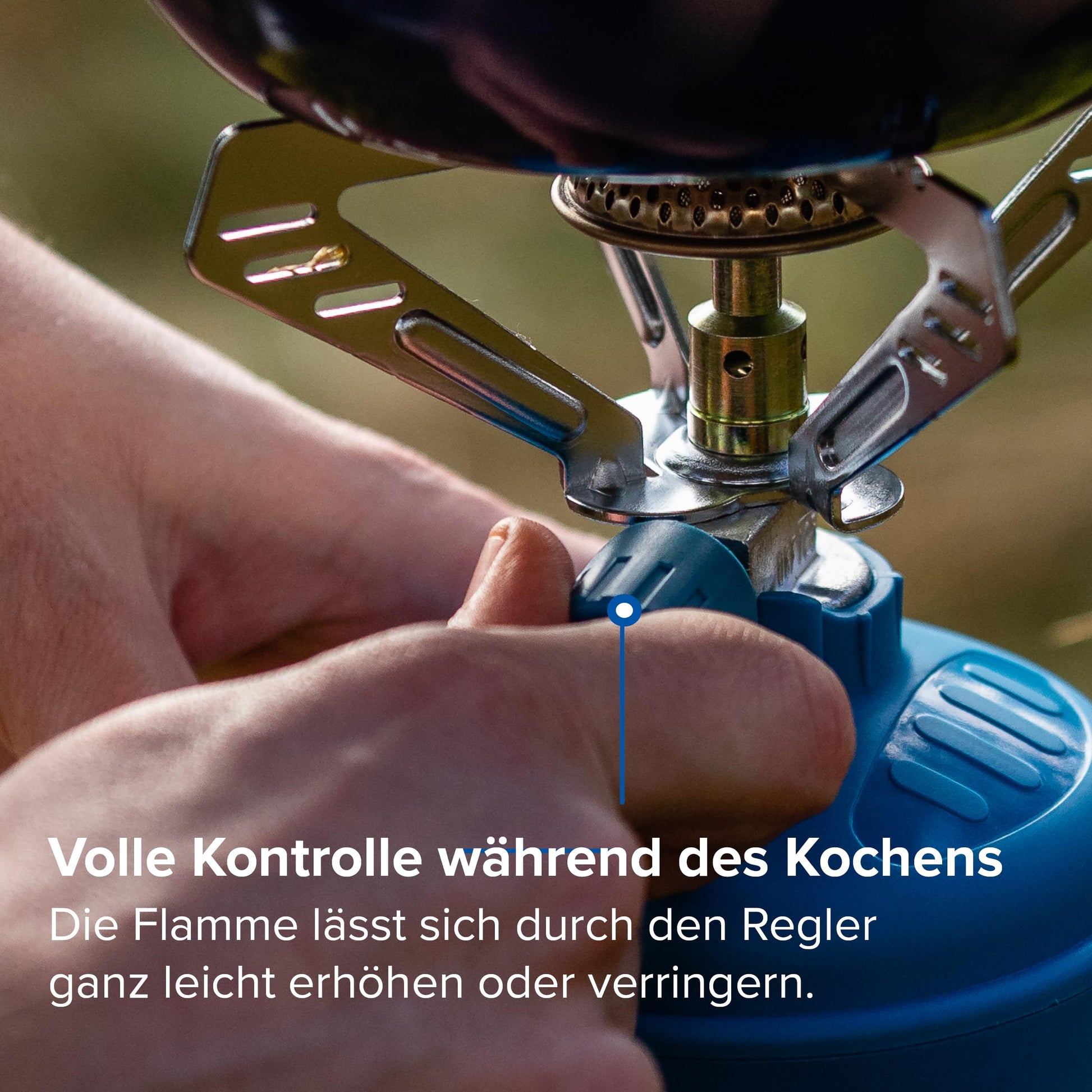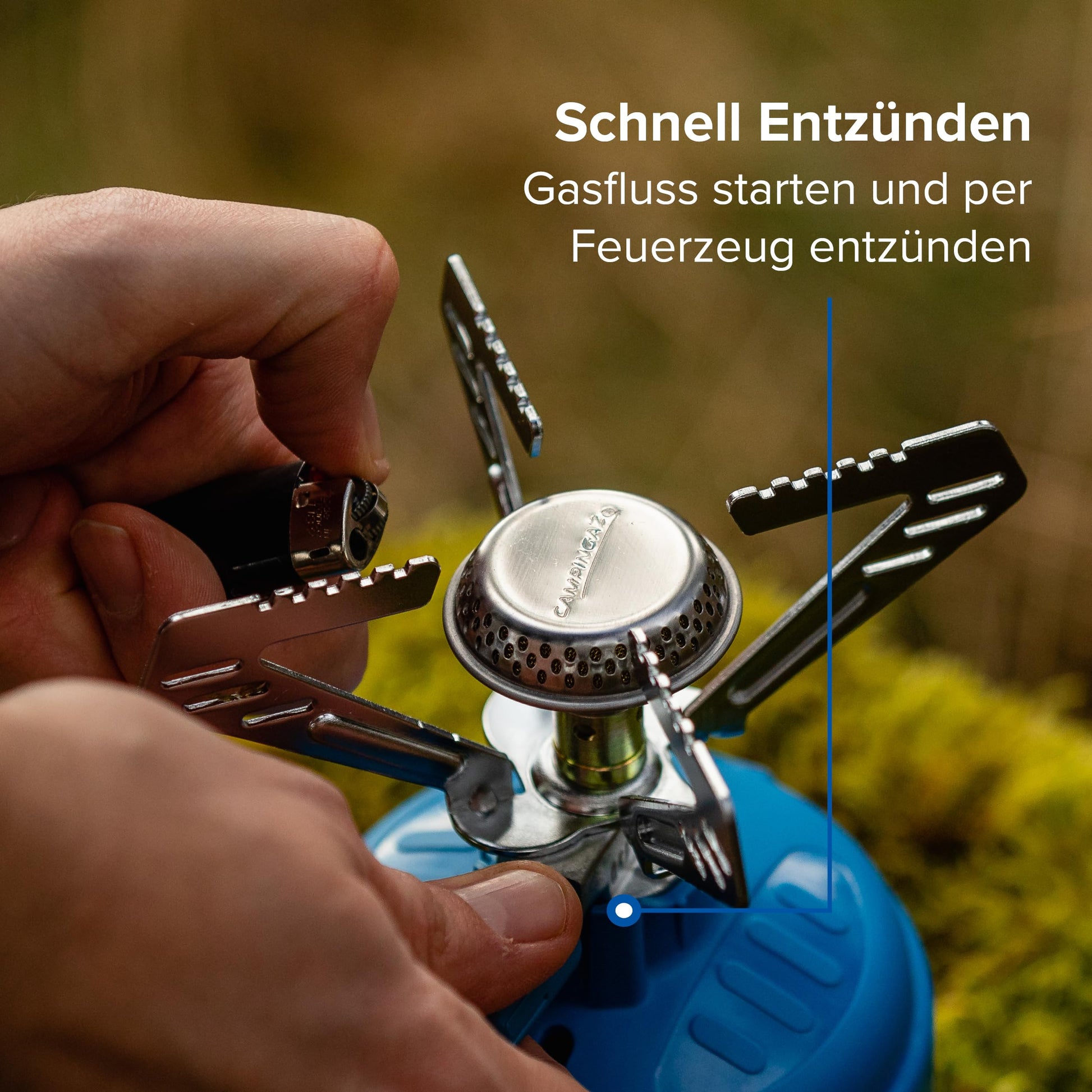 "Compact and powerful: Easy-to-use single burner stove (1250 W); sturdy design; large pot support for maximum stability while cooking. Easy handling: The push-in gas cartridge can be easily inserted into the stove, then the housing is screwed on, the plastic bell provides stability and protects the cartridge. Optimized design: Compact and lightweight, super easy transport, can be used anywhere the stove is needed, whether camping, picnicking, or at festivals. Worldwide availability: Operates with our Campingaz C206 GLS push-in gas cartridges - global distribution network for gas cartridges (in over 50 countries), dealer overview at campingaz.com/gasfinder. Power: 1,250 W; Boil time: 5 min 20 sec (1 liter); Gas consumption: 90 g/h; Weight: 280g; Gas cartridge sold separately."