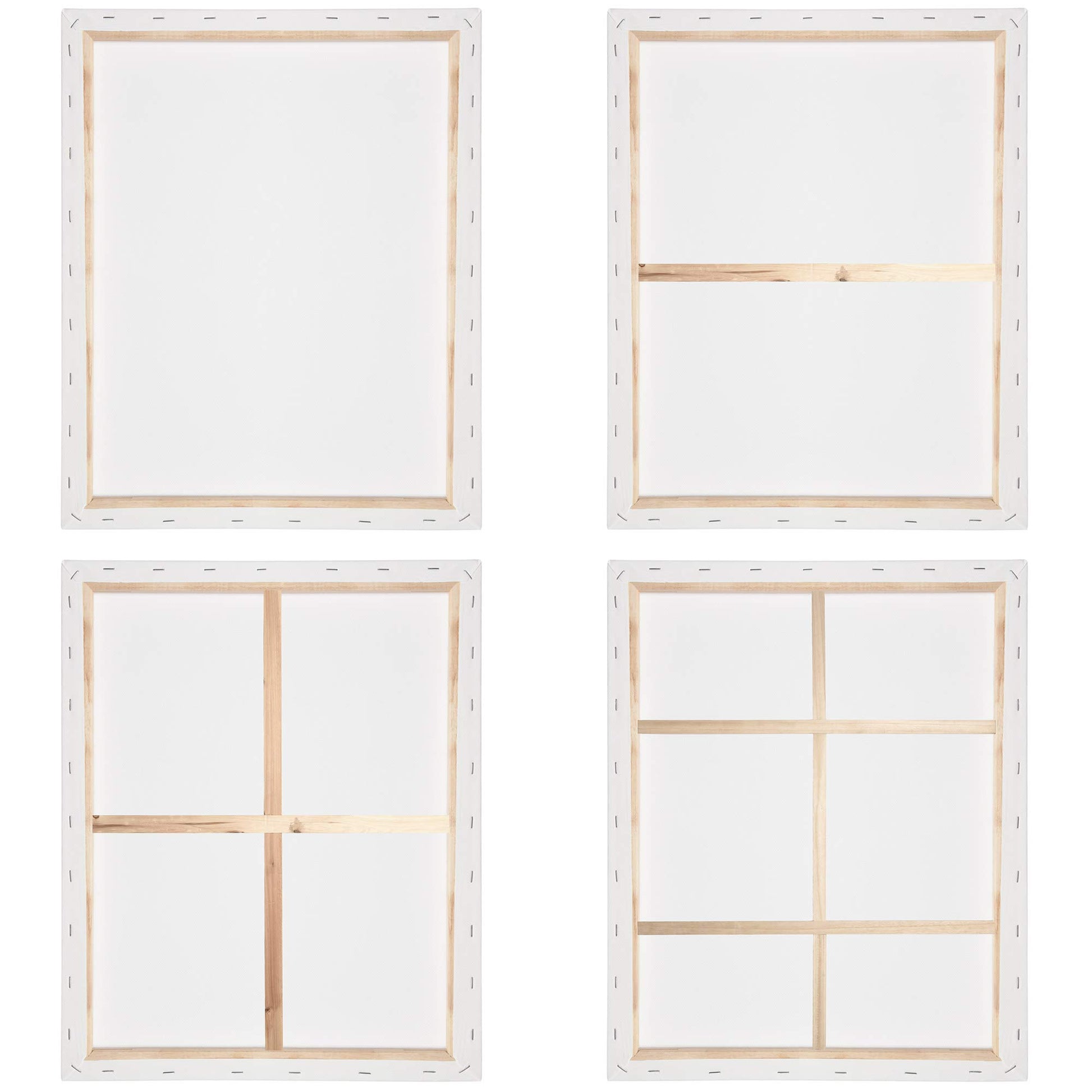 "17 mm wooden frame, 4-8 wooden wedges included for resizing. 1-3 wooden cross braces for stability.",