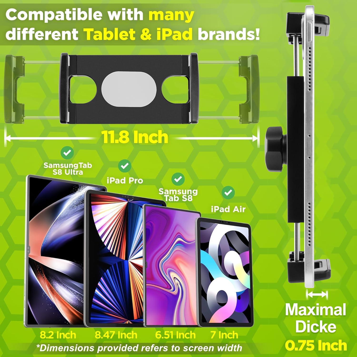 π Master your views - Take control with our uncomplicated car tablet holder, offering full flexibility with a 360Β° rotation for the perfect viewing angle. Behind the wheel of the truck? This iPad holder for trucks can be easily adjusted to your preferred height, ensuring optimal visibility through windshields, dashboards, and side windows.