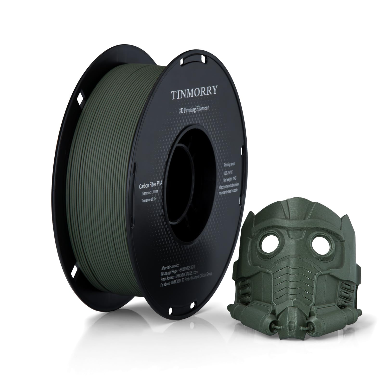 Carbon fiber PLA filament 1.75mm, TINMORRY PLA-CF 3D printing filament, Compatible with Bambu FDM 3D printers, 1 KG 1 spool, Gray-green