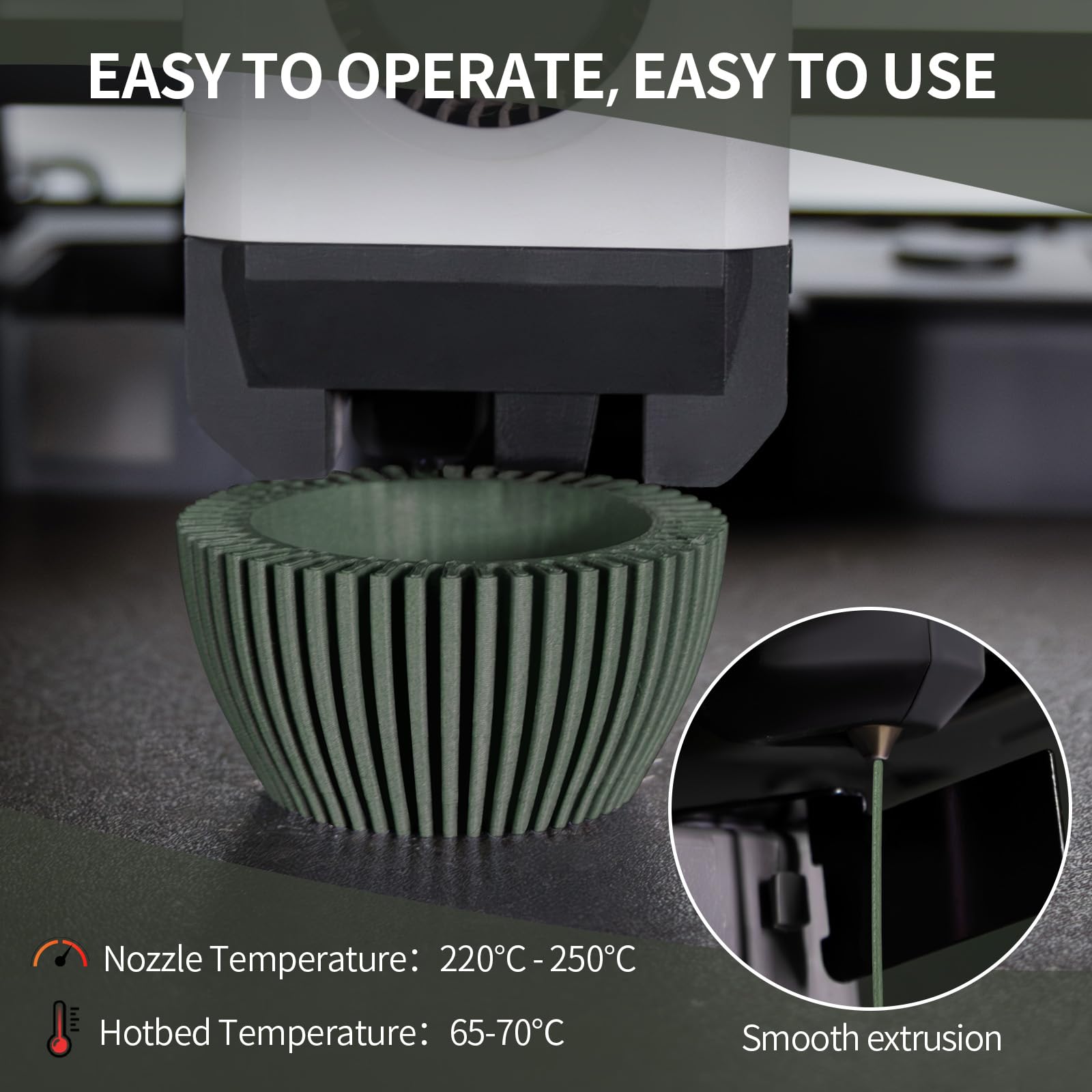 Unique texture and matte finish: Effectively hiding the layer lines, our PLA-CF 3d printing filament gives the prints a smoother and higher quality appearance. With the matte printing surface, it is the ideal filament for printing models with a matte finish.