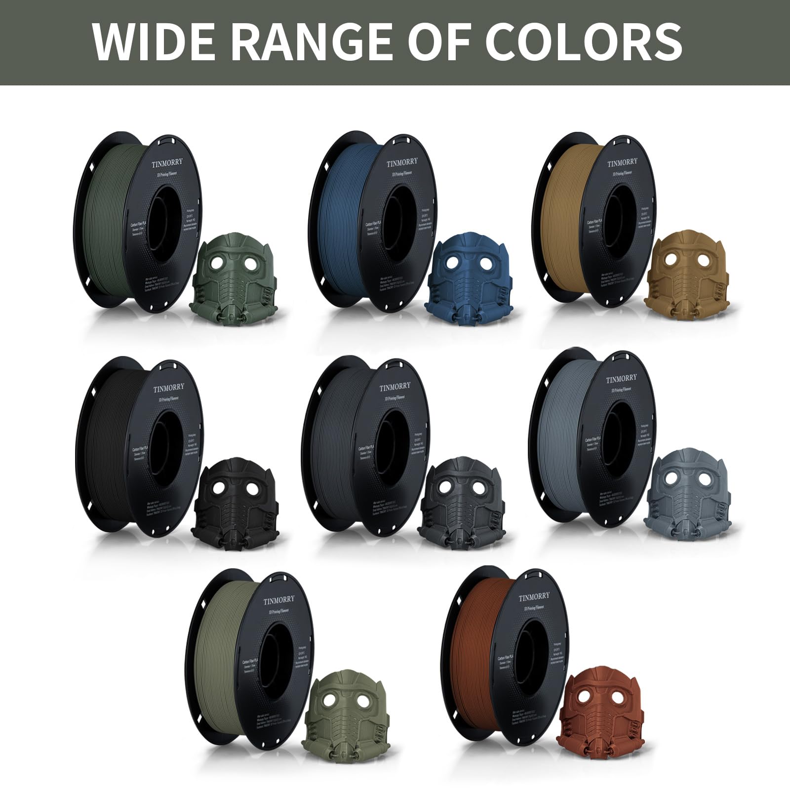 "Superior mechanical properties: TINMORRY PLA-CF Filament 1.75mm contains chopped carbon fibers and is stronger and stiffer than ordinary PLA, making it better suited for printing general technical parts or models that require impact resistance.