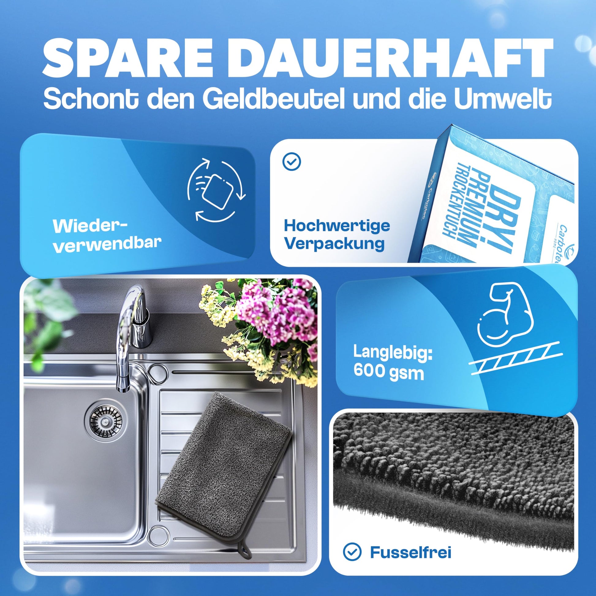 "✔️ REUSABLE, WASHABLE & SUSTAINABLE The towels are machine washable up to 60°C, durable, and shape-retaining - a sustainable alternative to disposable drying towels or chamois leather. Even after many wash cycles, the full performance is retained."