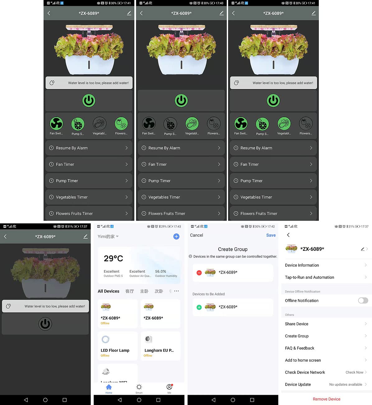 ["Intelligent growing modes for herbs, vegetables, fruits, and flowers • Adjustable growth light for optimal plant growth • Water pump circulates water to prevent root rot • Fan simulates wind and aids in natural pollination • Free ELESION app for worldwide access, control, and more • Fully compatible with Smart-Life and Tuya app","Smart hydroponic WiFi growing system for 12 plants • Customizable to plant growth phases: Height-adjustable light 20 - 38.5 cm • Free app "Elesion" for iOS and Android: for worldwide control • WiFi compatible: for WLAN standards IEEE 802.11b/g/n (2.4 GHz) • 12 cultivation sponges: 55% polyurethane foam, 45% peat substrate • Dimensions plant tray: 350 x 345 x 260 mm, total height: 540 mm, weight: 2,100 g","Intelligent growing modes for herbs, vegetables, fruits, and flowers • Provides roots with optimal oxygen and prevents rot: water pump circulates water • Compatible with Amazon Alexa and Google Assistant: turn on/off by voice command (requires Amazon Echo or Google Home or a compatible system) • Quiet operation • Power consumption: 23 watts","Promotes optimal plant growth: Growth light covers full spectrum and mimics sunlight thanks to LEDs in 3 colors (white, red, blue) • Fan simulates wind and aids in natural pollination • Also compatible with Siri from Apple: Voice commands and associated actions can be configured via iPhone and iPad • Water tank with viewing window for water level control: Capacity 7 l • Dimensions cultivation sponges: each 40 x 20 x 15 mm, weight: each 3 g","Growing system HAS-001 including water container with lid for cultivation baskets, water pump, LED panel, connecting rod, 12 cultivation baskets, 12 lids, 12 plastic domes, 12 cultivation sponges, 12 labeling stickers, pliers, 230-volt power supply and German instructions. Grow box - Also relevant or suitable for: Indoor garden hydropon, plant cultivation set, herb garden, plant cultivation • For single orders, we will send the item directly in a secure & optimized original product carton."]