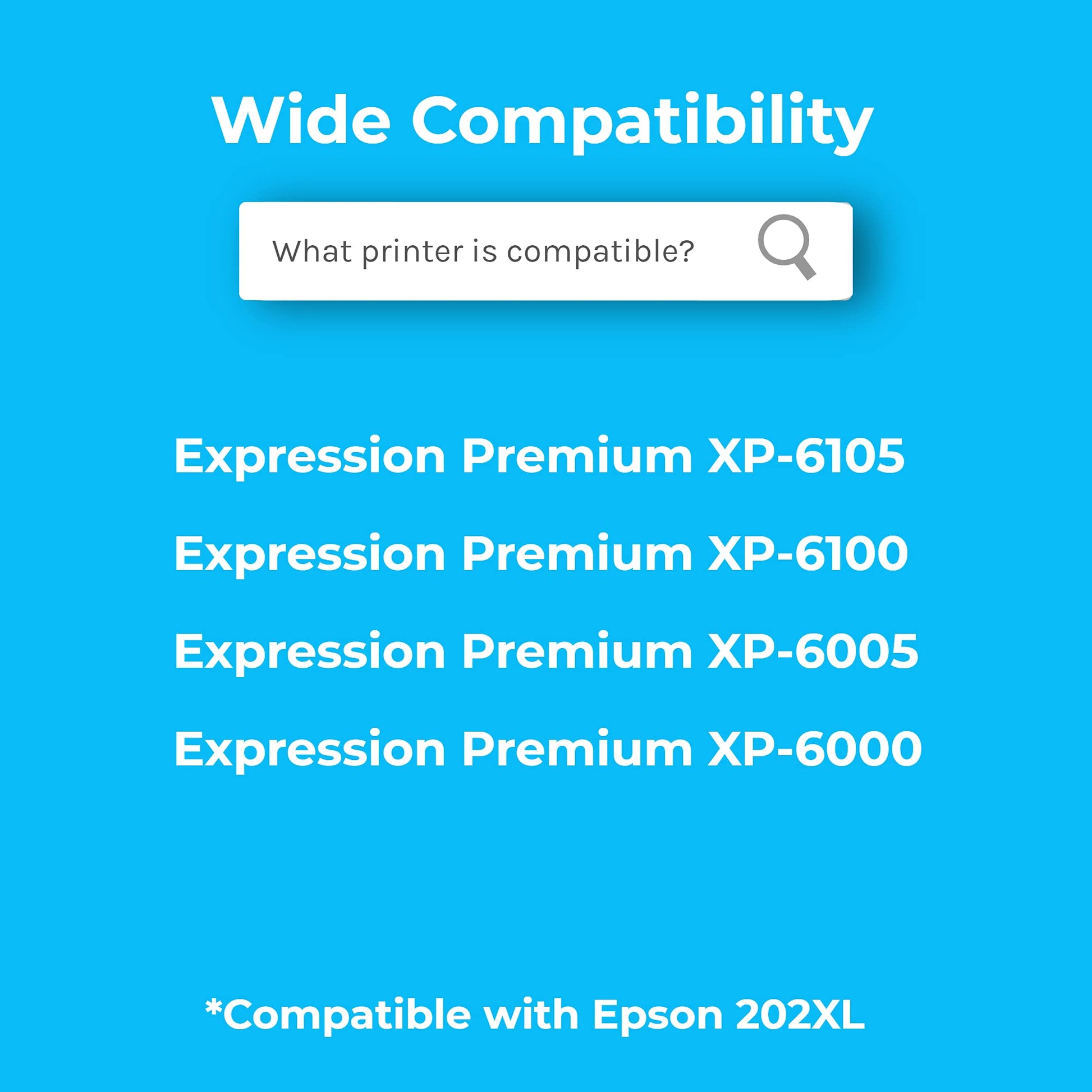 "Compatible with your Epson printer: Cartridgeify 202 XL for Epson 202 or 202XL ink cartridges and compatible with Epson Expression Premium XP-6000 XP-6005 XP-6100 XP-6105.
