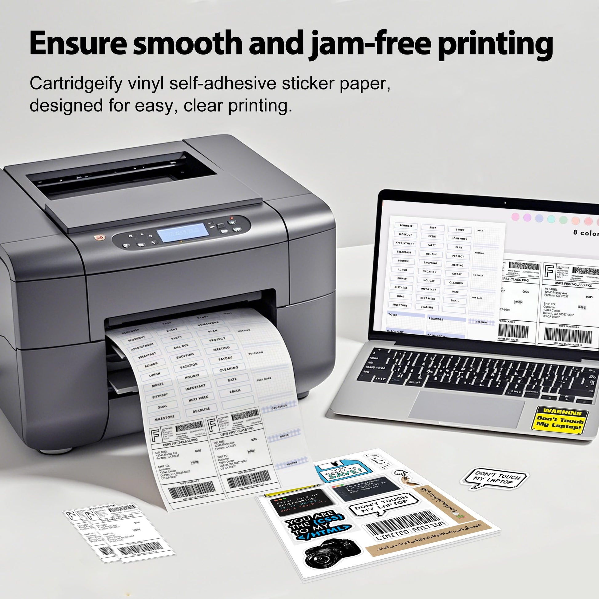 Cartridgeify's vinyl sticker paper is perfect for creating waterproof and durable stickers, labels, and custom decals, whether for home projects, professional branding, or outdoor signage. Ensure your creations look vibrant and long-lasting.