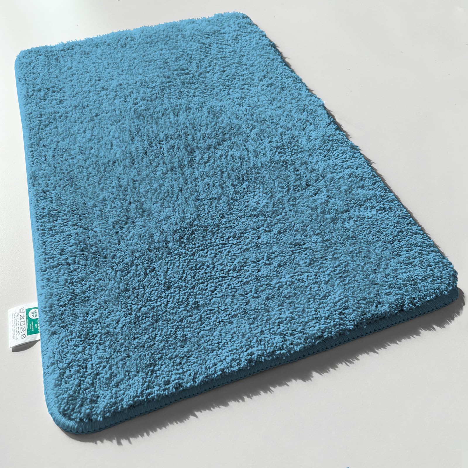 casa pura turquoise bath mat soft, fluffy bathroom rug in shaggy look, non-slip washable bath mat - shower mat, carpet floor mat for bathroom, shower 60x100 cm, Sky Soft