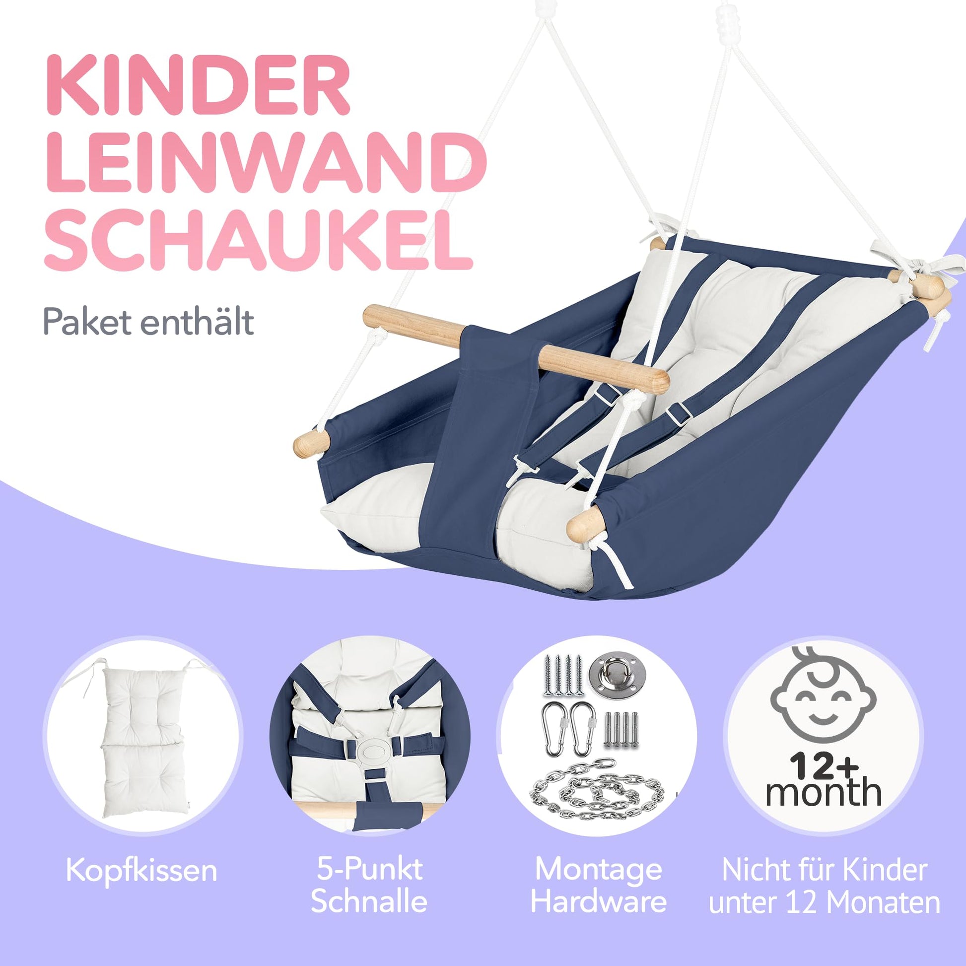 "Extra cozy made - We use untreated and polished wooden dowels for our children's swings. The hanging chair features a soft fabric cover and a skin-friendly polyester filling cushion that you can assemble for added comfort.",