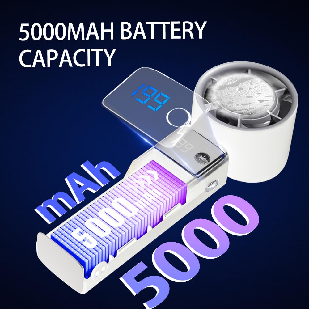 - Ultra HD Digital Display: The mini hand fan is equipped with an HD digital display showing current air speed and remaining power. This handheld fan has a scroll wheel for speed adjustment, continuously adjustable from 1 to 199 speeds.