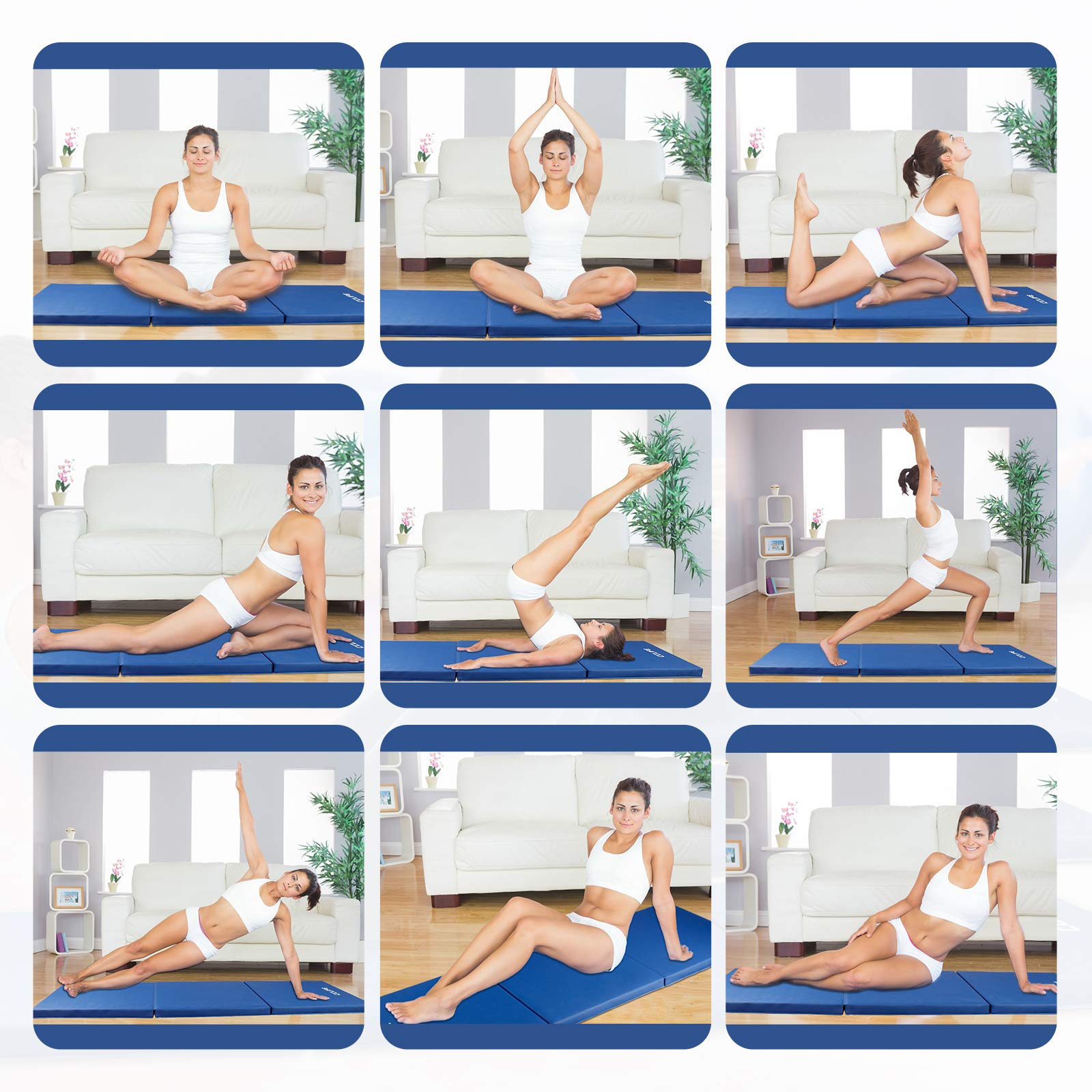 ["HIGH QUALITY- The gymnastics mat is stable and durable thanks to the 2 inch thick elastic EPE filling material.","BEAUTIFUL SURFACE- With coated artificial leather, the mat is easy to clean and wear-resistant, skin-friendly, non-slip.","MULTIFUNCTIONAL- Suitable for all sports activities - can also be used as a base in the swimming pool or as a play mat for children.","PORTABLE- With carrying straps, it is very convenient to take along.","FOLDABLE- With the practical folding design, the mat only takes up minimal space when not in use."]