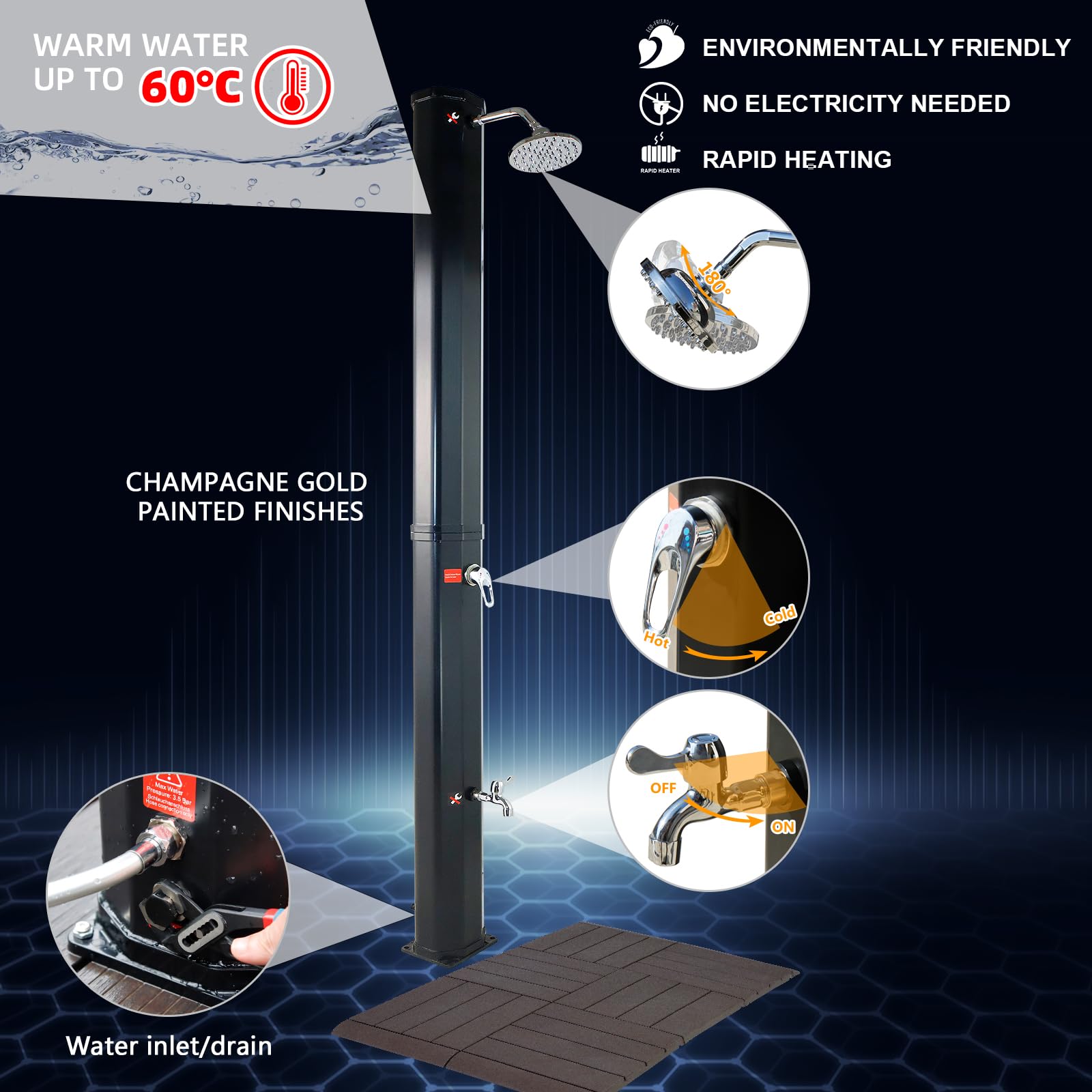 Versatile use: Perfect for use in the garden and by the pool. Safety note: The water supply must remain open during use to ensure sufficient water pressure and proper functioning. Add cold water before showering and check the temperature, especially in strong sunlight."