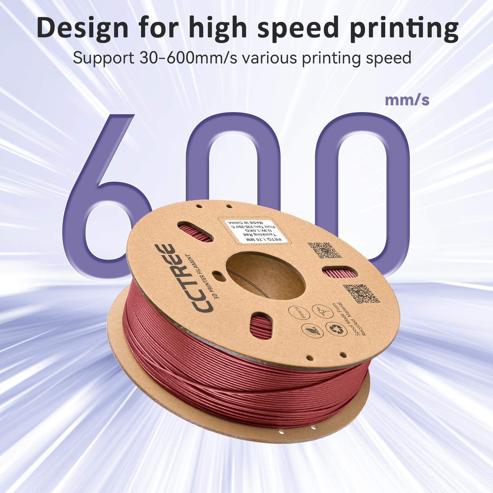 CCTREE PETG 3D Printer Filament 1.75mm, excellent toughness, precision +/- 0.03mm, 1kg spool (2.2lbs), for most FDM 3D printers, Galaxy Red