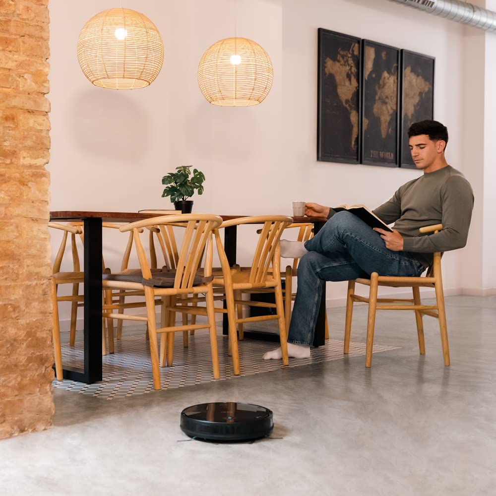 "4-in-1 Cleaning Robot: sweeps, vacuums, mops, and scrubs the entire floor intelligently. 6 cleaning modes for all your cleaning needs: Auto, Random, Scrubbing, Spiral, Edges, and Manual. Inclusive of self-emptying base, the robot automatically empties its tank, so you can forget about dust for weeks. 3-liter bag capacity. BagDetect technology detects if you have a bag and warns you of errors. 2100 Pa suction power and automatic turbo mode for carpet cleaning. Up to 160 minutes of autonomy and Total Surface Technology that takes the robot back to its base to recharge when the battery is low, to continue cleaning where it left off. iTech SmartGyro Technology for a clean home. App control for your smartphone to select cleaning modes, programming, suction level, or scrubbing, and monitor the cleaning progress. The multifunctional brush designed with rubber and silicone bristles, equipped with smart scrubbing with 3 water quantities to descale all types of dirt in your home. Plus, the two side brushes increase the sweeping and suction range for more efficient cleaning."