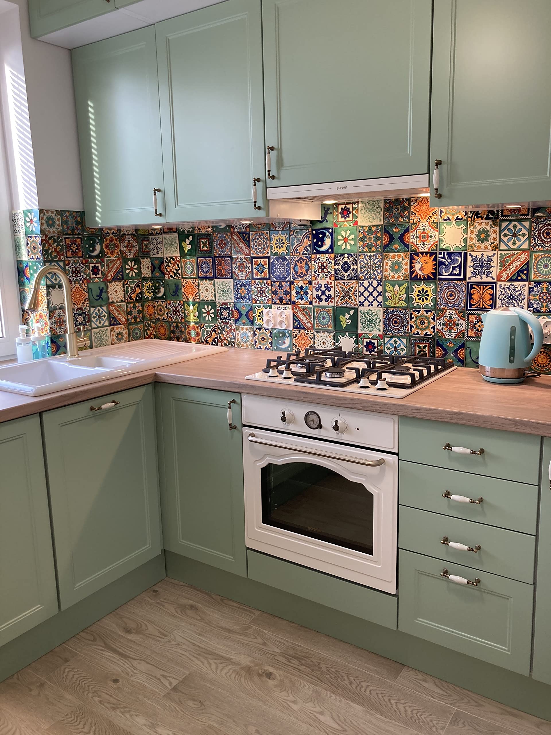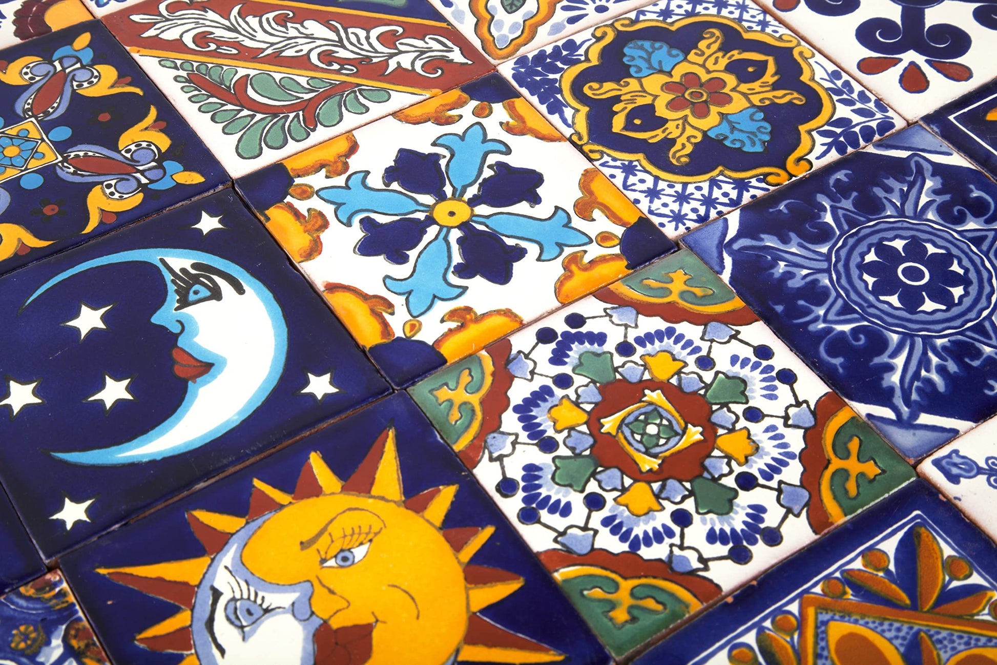 Mexican Ceramic Tiles are perfect for bathrooms, kitchens, showers, kitchen backsplashes, sinks, and mirrors. They can also be used on the kitchen wall above the counter next to the stove. They can also be used under the stairs (as decoration), guest bathroom, on a table (as a tabletop), on a fireplace, or simply on a decorated wall.