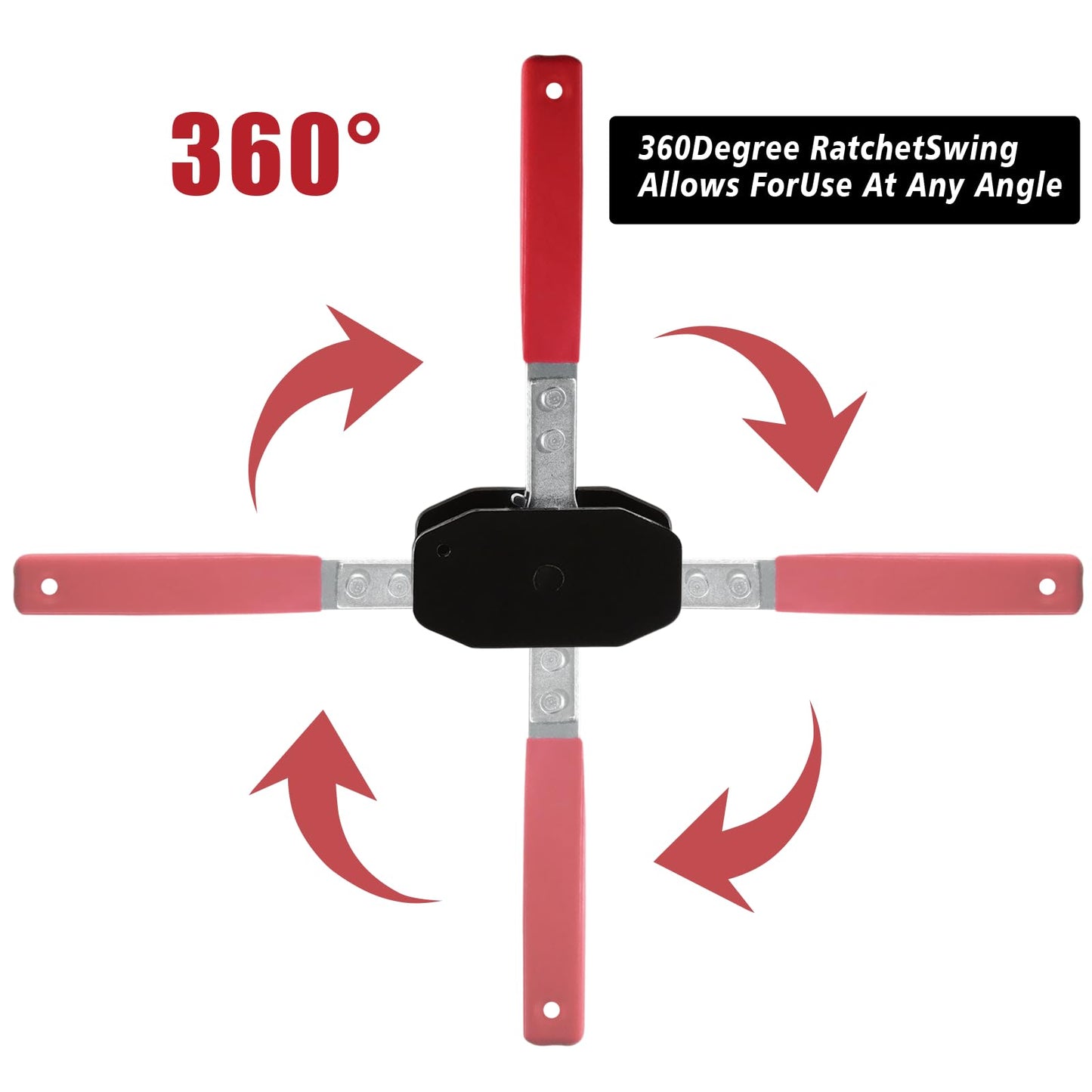["【360° Degree Ratchet】This tool features a 360-degree rotating ratchet design, allowing the spreader to be positioned in any angle. Furthermore, your hands won't get tired from constant pressing.",