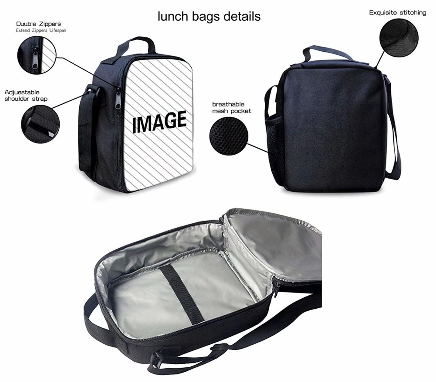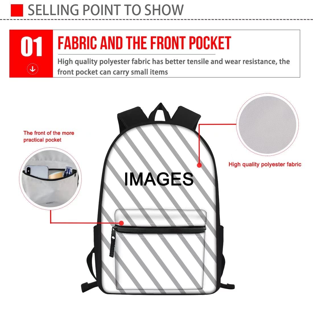 ["3-piece School Bag Set: 1 x Backpack + 1 x Thermal-insulated Lunch Bag + 1 x Pencil Case.","Backpack size: 15.75 x 11.22 x 6.69 inches, 2 x side pockets, 1 x zipper front pocket, 1 x laptop/tablet compartment (fits up to 13.3 inches). Polyester fabric, padded shoulder strap, lightweight, durable.","Lunch Bag dimensions: 9.45 inches H x 7.48 inches L x 3.15 inches W. Polyester fabric, EVA + PE cotton lining; 1 x zipper on main compartment, 1 x side mesh pockets provide additional storage room for tissues, snacks, spices, yogurt, etc.","Pencil Case size: 8.66 inches x 4.72 inches x 1.77 inches. Please allow 0.39-1.18 inch deviations due to manual measurement, making it perfect for all standard size pens or pencils.","Occasions: The backpacks are ideal for elementary school girls, boys, school kids, primary school students, unisex teens, perfect for school, sports, gym, streetball, shopping, camping, hiking, and the beach."]