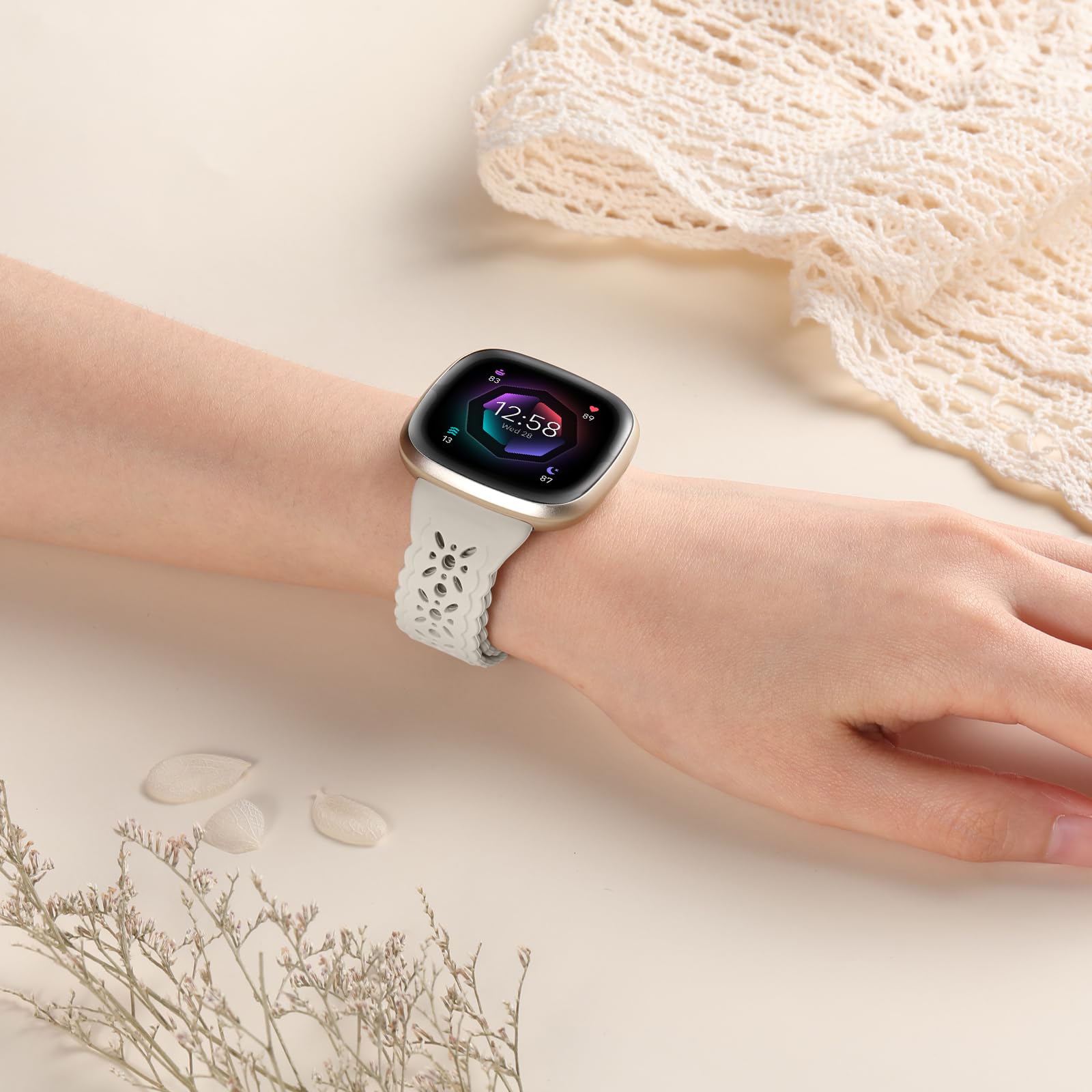 Easy and secure installation: These elegant hollow-out bands for Versa 4 band for women with improved studs at both ends make it easy to attach your Fitbit watch interface precisely and securely. Say goodbye to worrying about losing your watch during various workout activities.