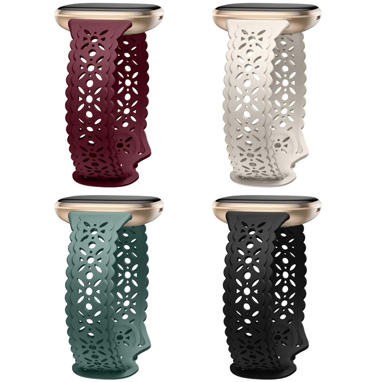Charlam 4 Pack Lace Replacement Bands Compatible with Fitbit Versa 3/Versa 4/Fitbit Sense/Sense 2, Soft Slim Hollow-Out Sport Watch Bands Replacement for Women Girls.