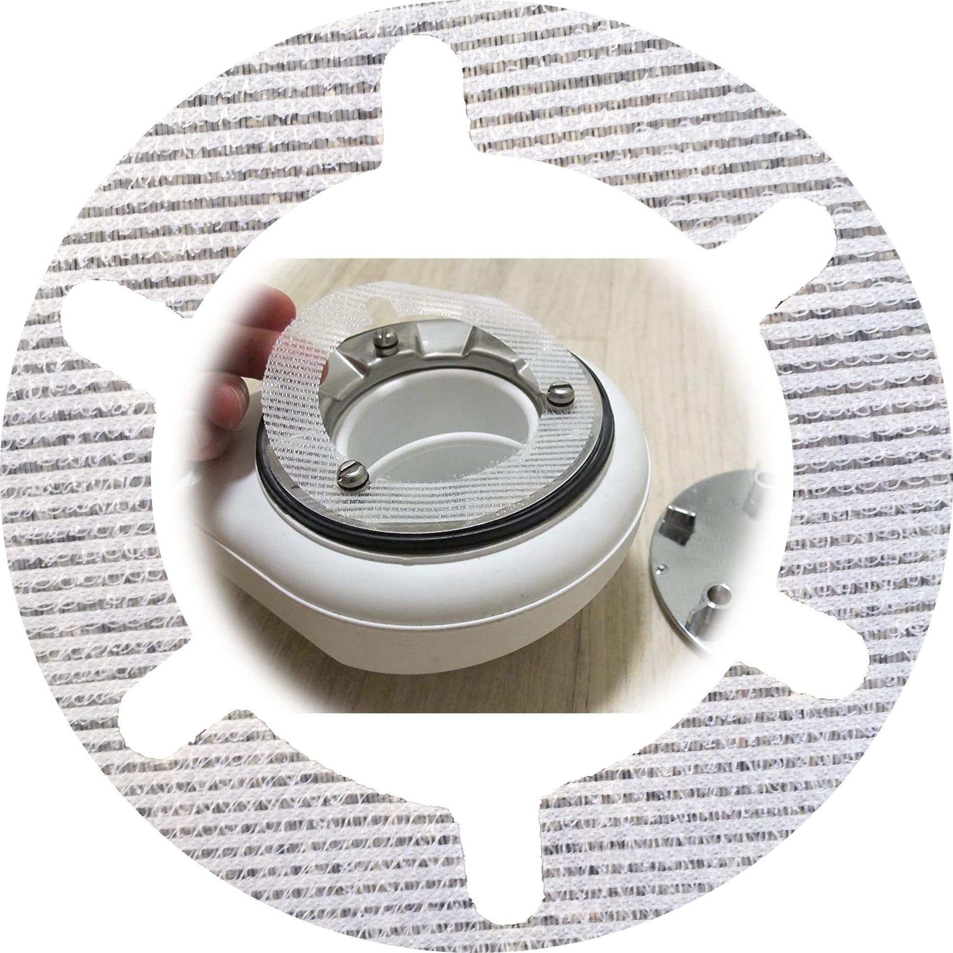 ["Free shipping","Hair filter for showers with large valve cover (> 4 inches), e.g. VIEGA, AlcaPLAST","Full filter easily disposed of and replaced","DIMENSIONS: 2.75 x 4.33 inches (inner diameter x outer diameter)","Contents: 50 pieces"]