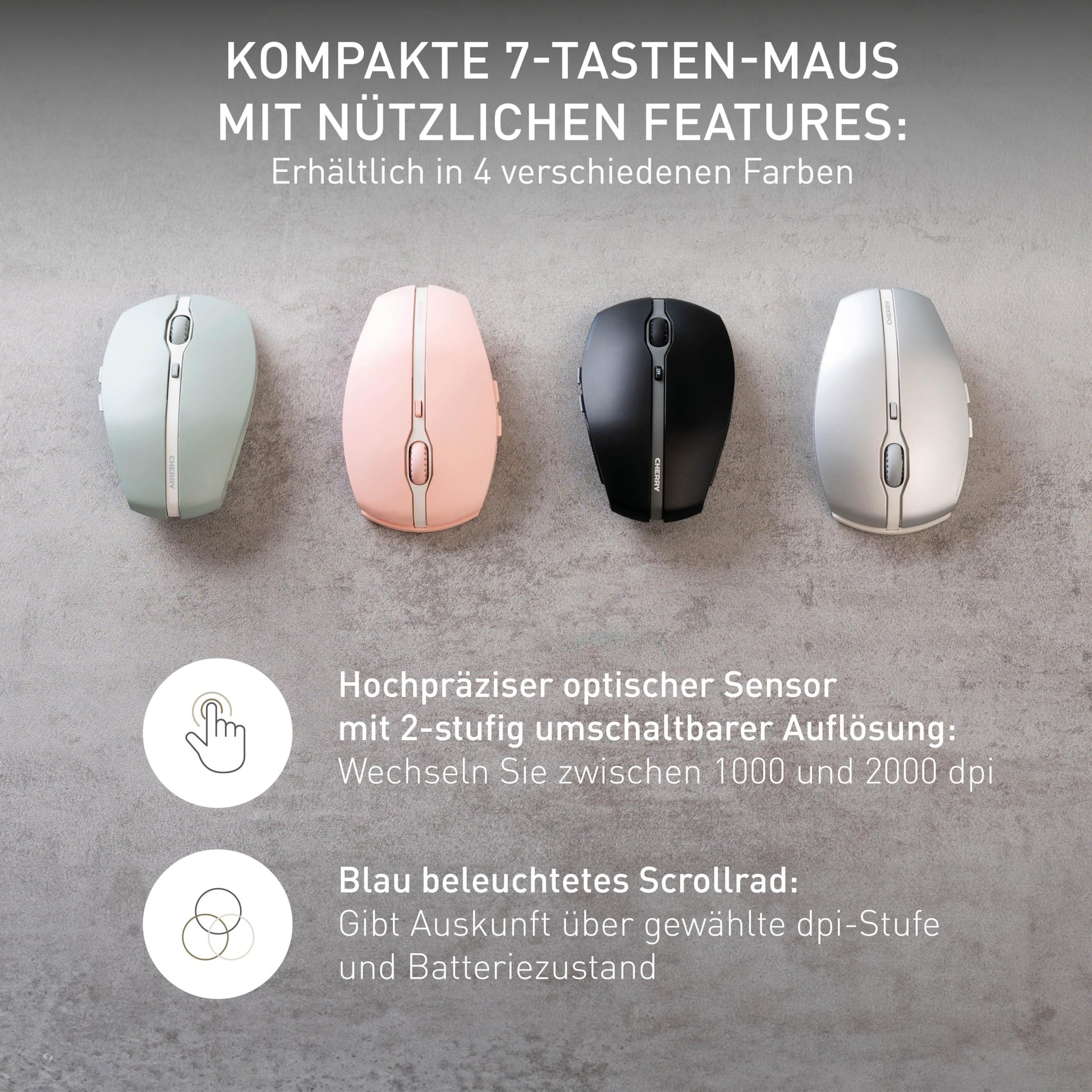 CHERRY GENTIX BT, Wireless Bluetooth mouse, Multi-Device function for up to 3 devices, Switchable resolution (1000/2000 dpi), Battery-powered, Black