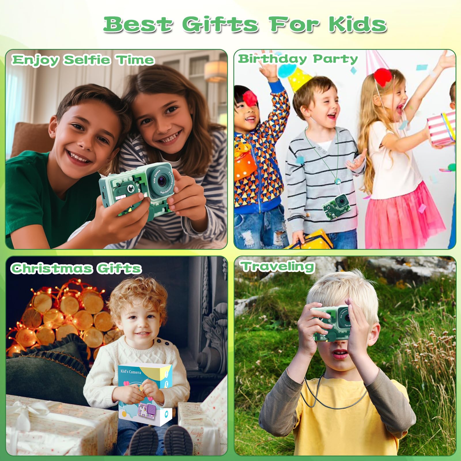 πΈ HD Video & Photo & Selfie Camera: Our kids camera can capture photos and 1080P videos, significantly improving the quality of photos and videos and helping children capture the beautiful scenes and wonderful moments of life. Front and rear dual lens, 8x digital zoom, time lapse, etc. make it more convenient to capture images from life and selfies. LCD screen, perfect mini video camera toy for kids.