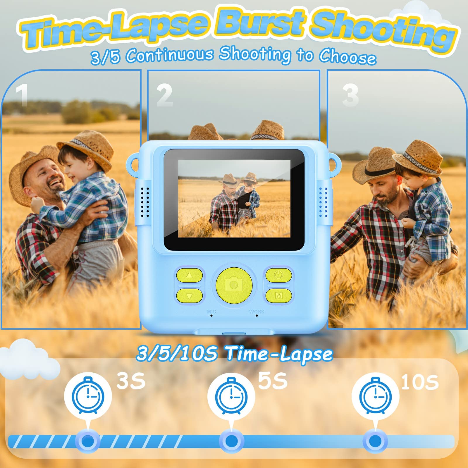 Children's Camera - Instant Camera Digital Camera Print 1080P - 16x Digital Zoom 2.4" Screen - 32GB Card - 3 Rolls of Printing Paper - with Storage Bag Christmas Gift for Children 3-12 Years old