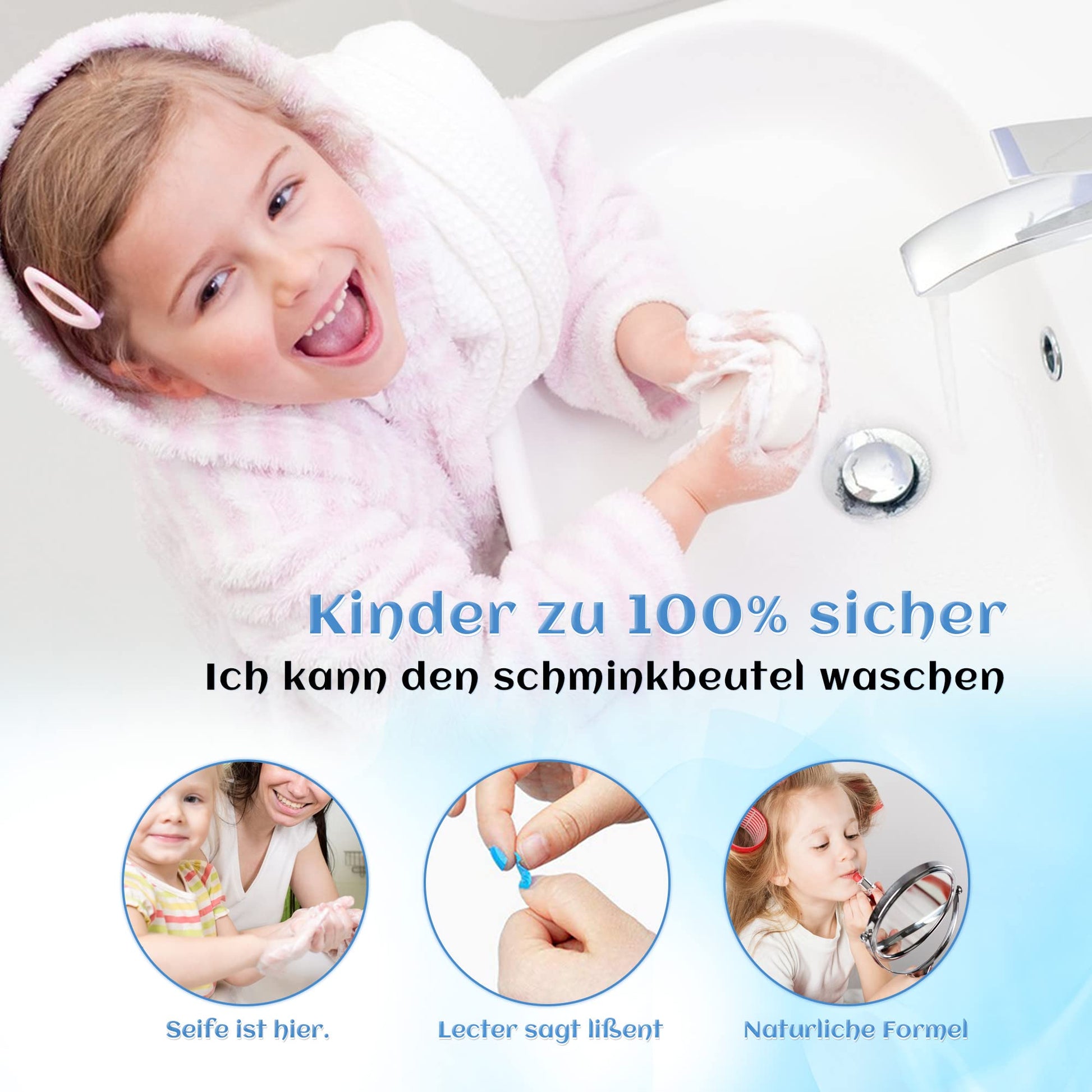 ["Safe for Children Washable Children's Makeup Set Girls"] Our children's makeup sets are made of safe, water-soluble materials, children's makeup set girls that can be washed off with soap and water, do not irritate and are perfect for children's skin. Children's makeup set girls whether she carefully applies the makeup or just has fun painting colors on her entire face, parents rely on the gentle ingredients of this kit.