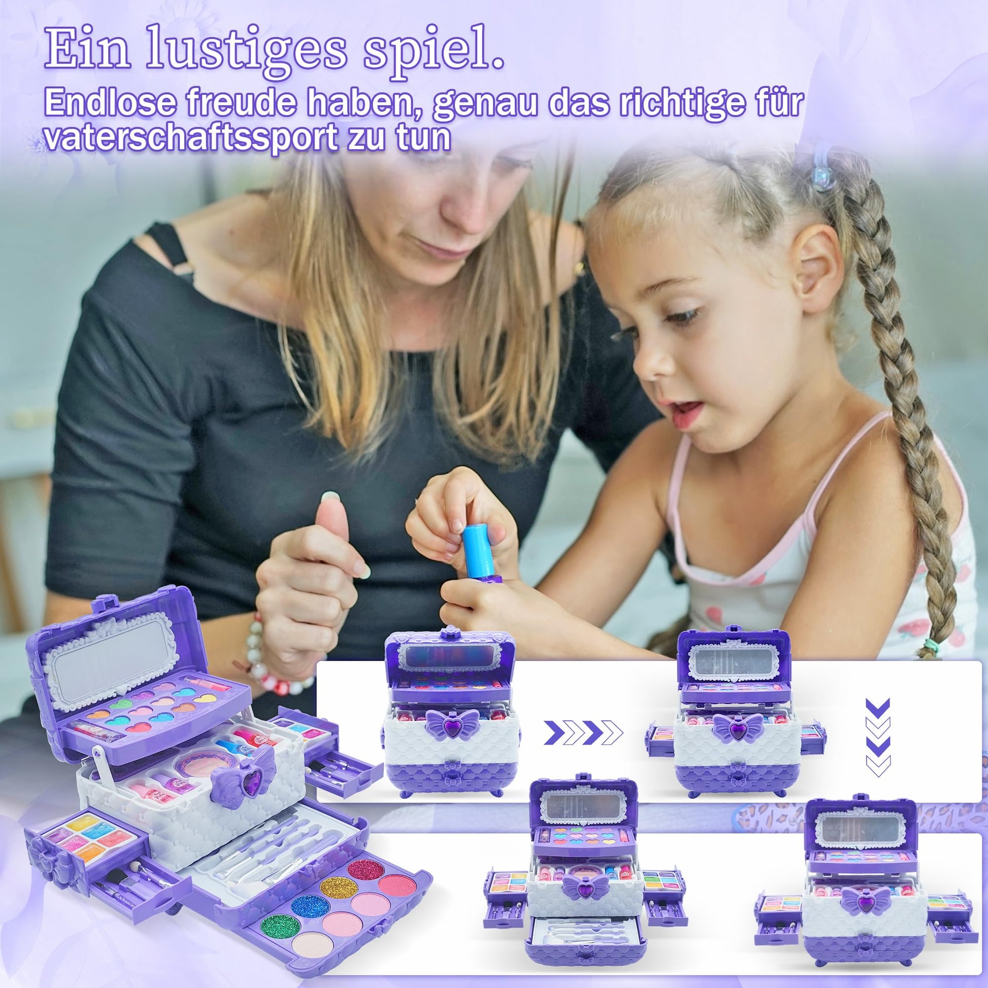 🍇【Combine Education with Entertainment Makeup Set】This complete children's makeup set girls toy can fulfill everything children need for makeup, like their mother. Also, keep your little ones from destroying your expensive makeup products. Our washable makeup toy set with numerous accessories stimulates and promotes children's creativity, imagination, aesthetic skills, and learning ability, making it fun.",