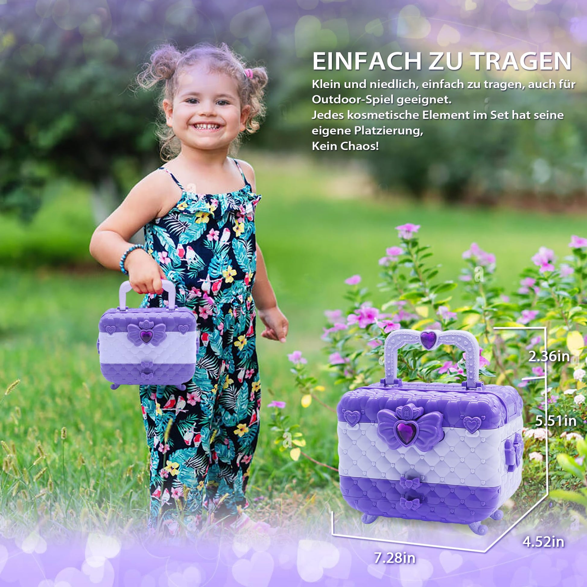 ["Dark Light Purple Washable makeup kit for girls"]: The makeup kit for little girls uses a water-soluble formula, no added preservatives, mild and non-irritating, no burden on the skin. The smooth exterior design makes it not easy to be damaged and protects the soft hands of children, easy to wash, non-toxic. Meet international toy safety standards (CPSIA, CPC, ASTM certificates).