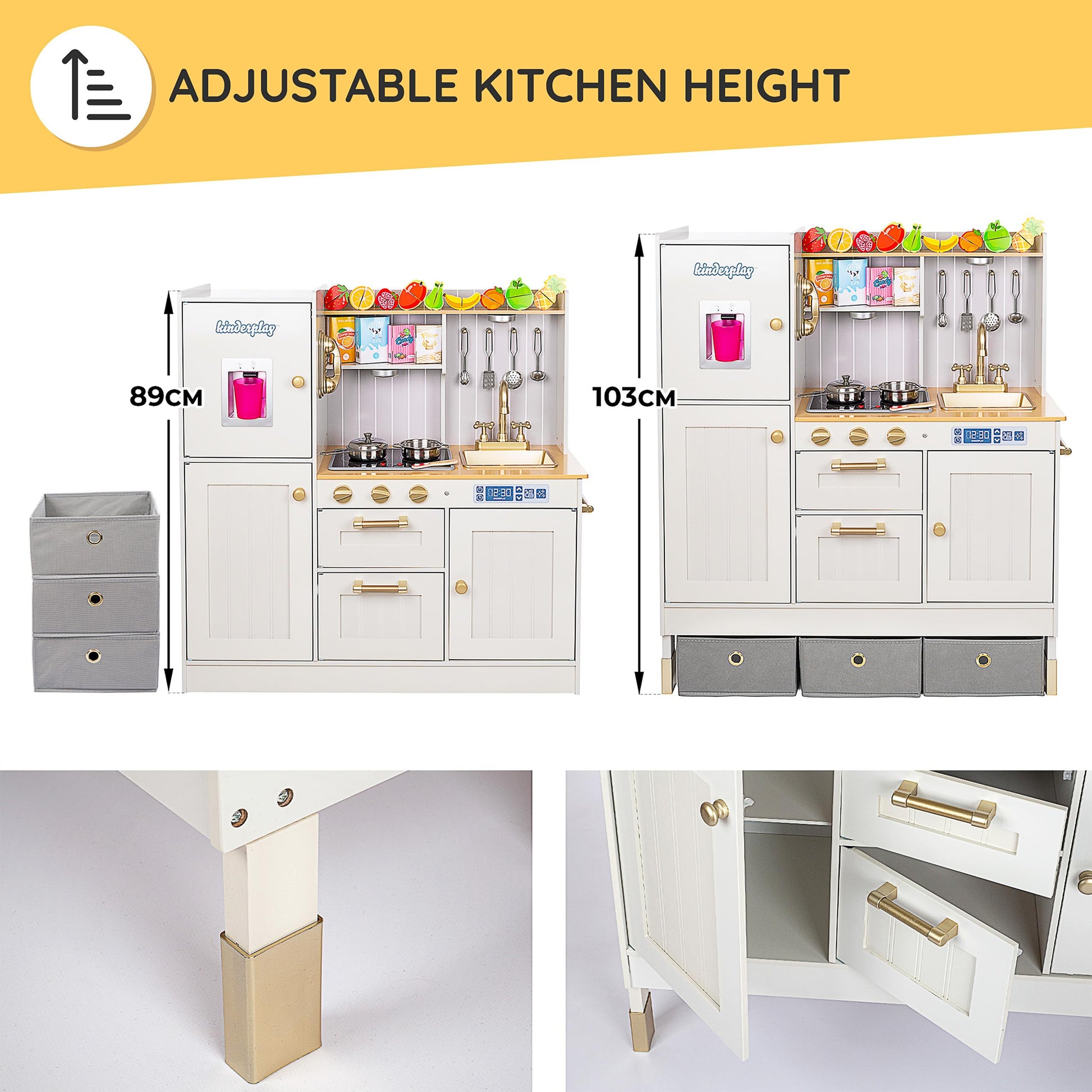Children's Play Green Series wooden kitchen - Adjustable height play kitchen 89-103 cm - LED light & cooking sounds - With accessories, water dispenser, oven - For children aged 3 years and above