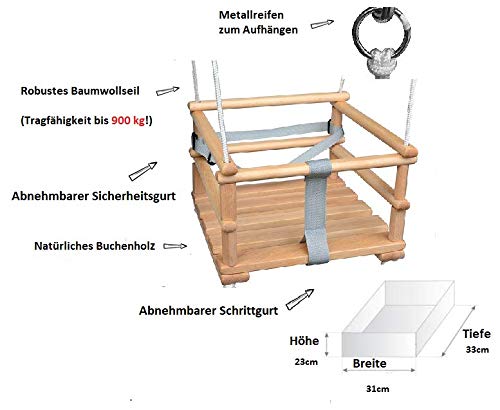 ✔SKYLINE wooden baby swing is a great gift for a child. The highest quality of plastics and textiles ensures the longevity of the swing. By easily assembling the backrest and fall protection, SKYLINE 3 in 1 baby swing can be quickly adjusted to the child's age and provide lots of joy.