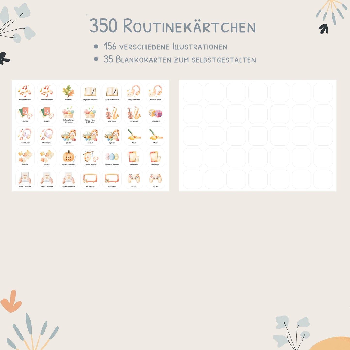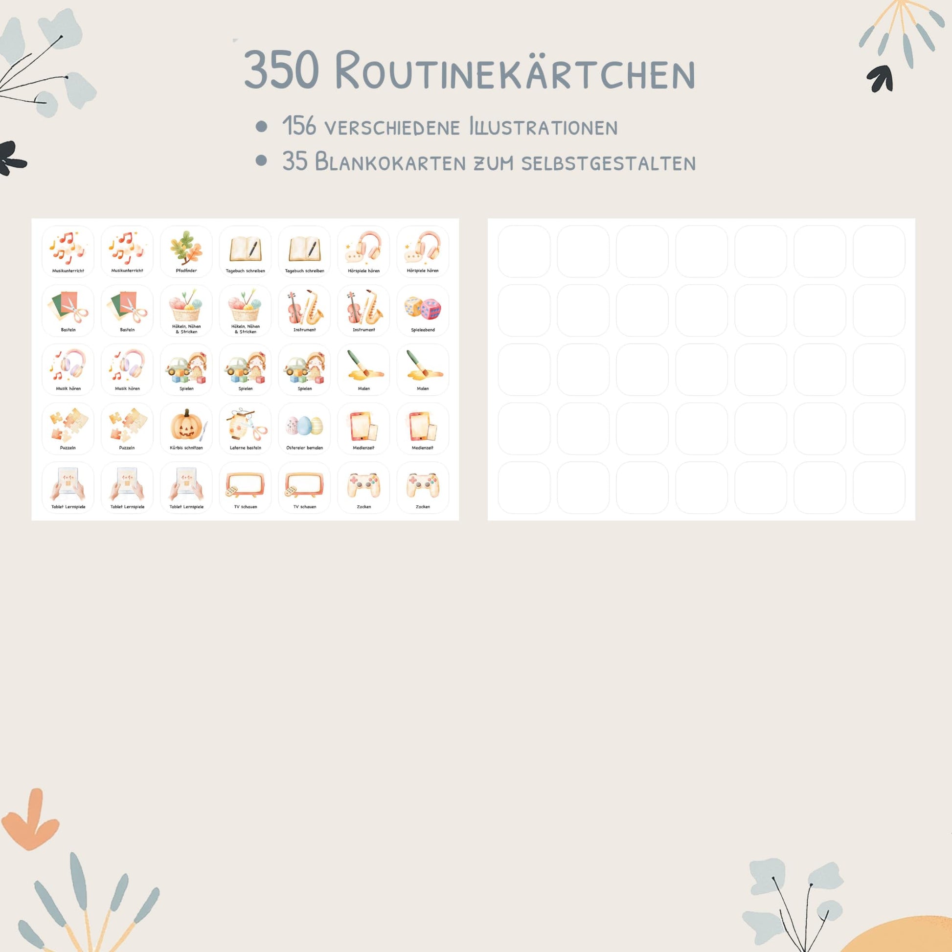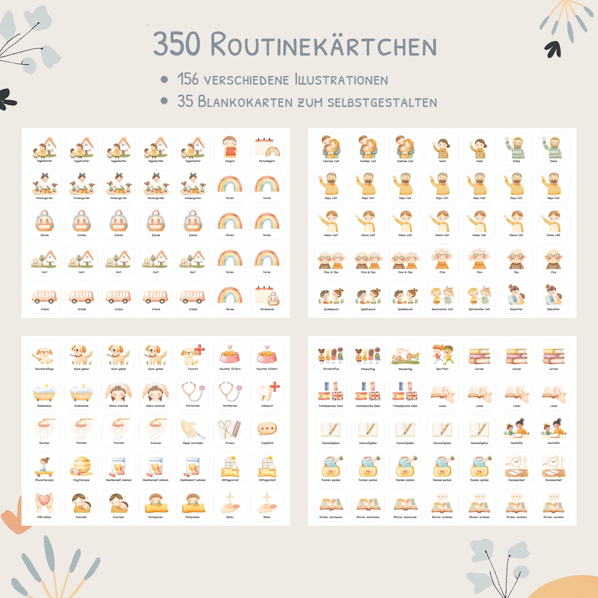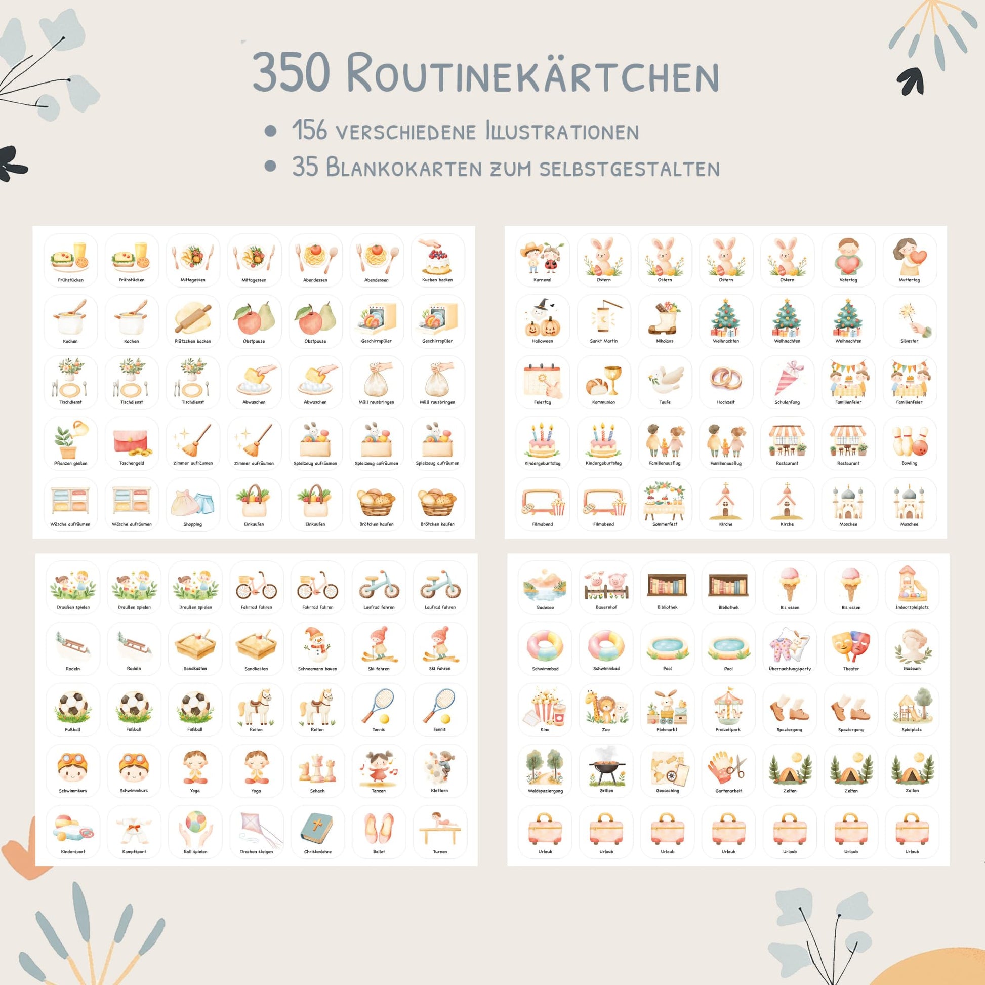 π¨ 350 cards for every everyday situation: With 156 different lovingly illustrated routines and 35 blank cards for personalization, the planner offers maximum flexibility β whether it's daycare, playdates, doctor appointments, or family time.