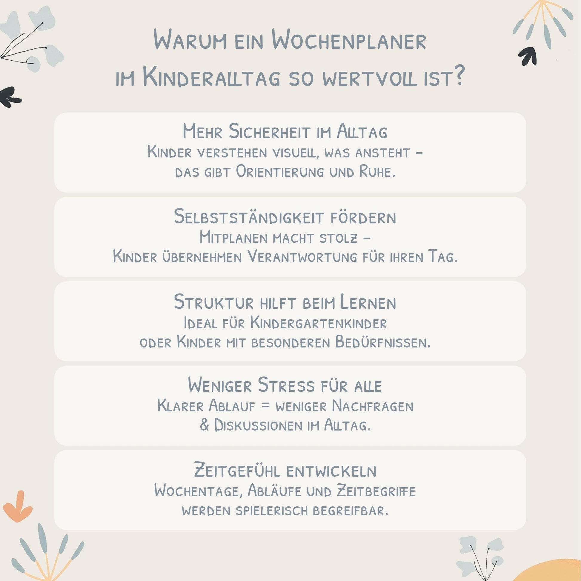 "π More orientation for children in everyday life: Our weekly planner makes daily and weekly routines visible β helping children develop independence, security, and a sense of time playfully.