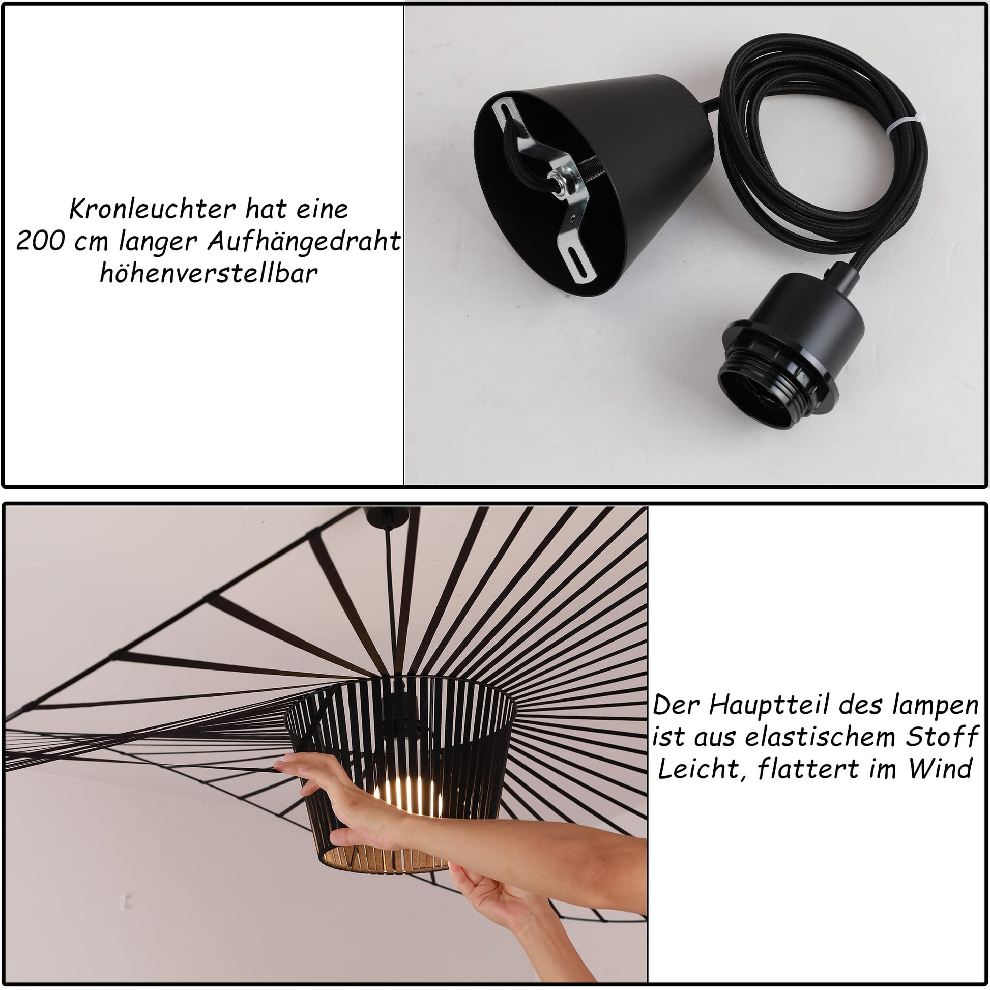 CHNB® Vertigo Lamp Black 140CM Modern Vintage Pendant Light Hanging Pendant Lamp Suitable for Dining Table Living Room Bedroom Chandeliers Lamps (Φ 140 CM)
