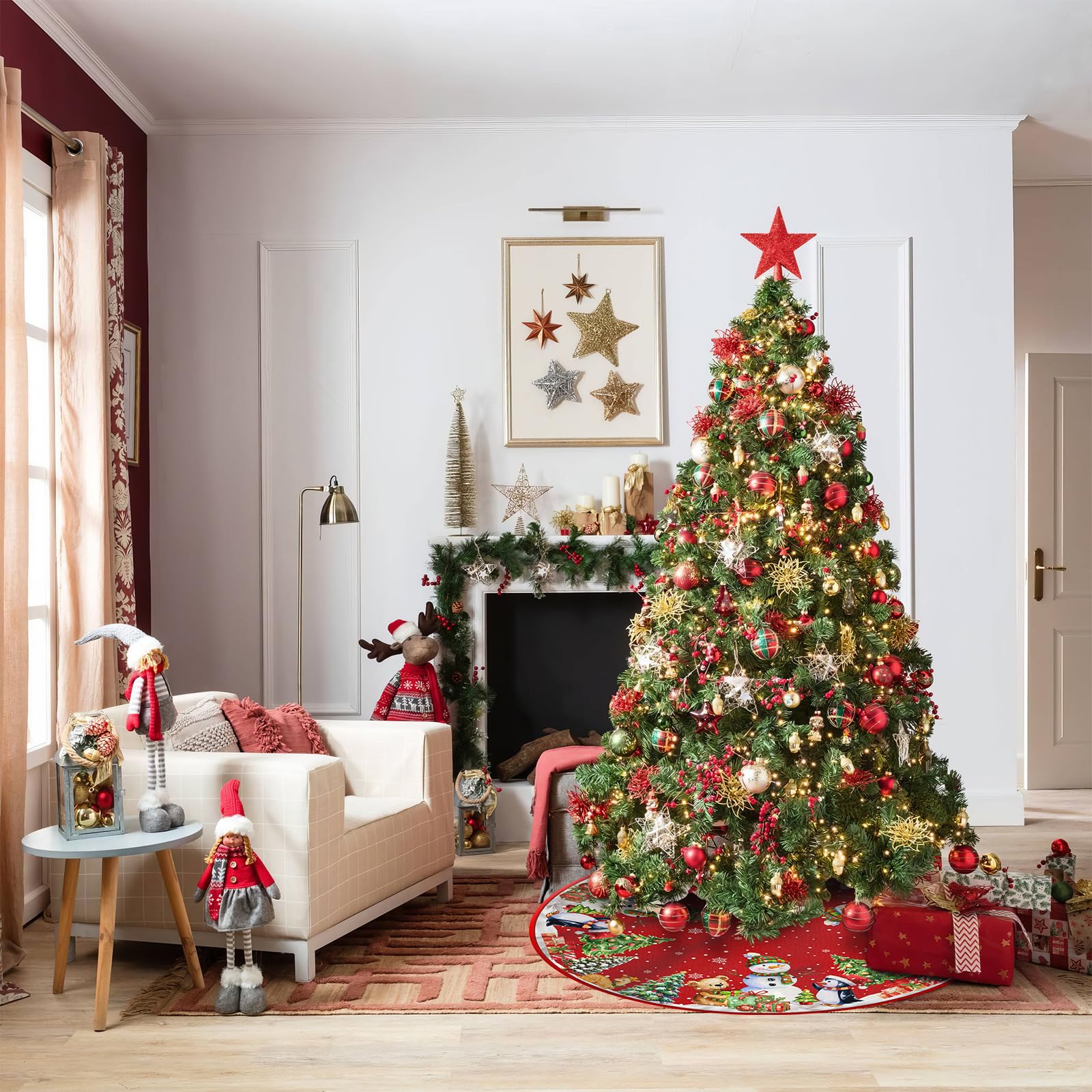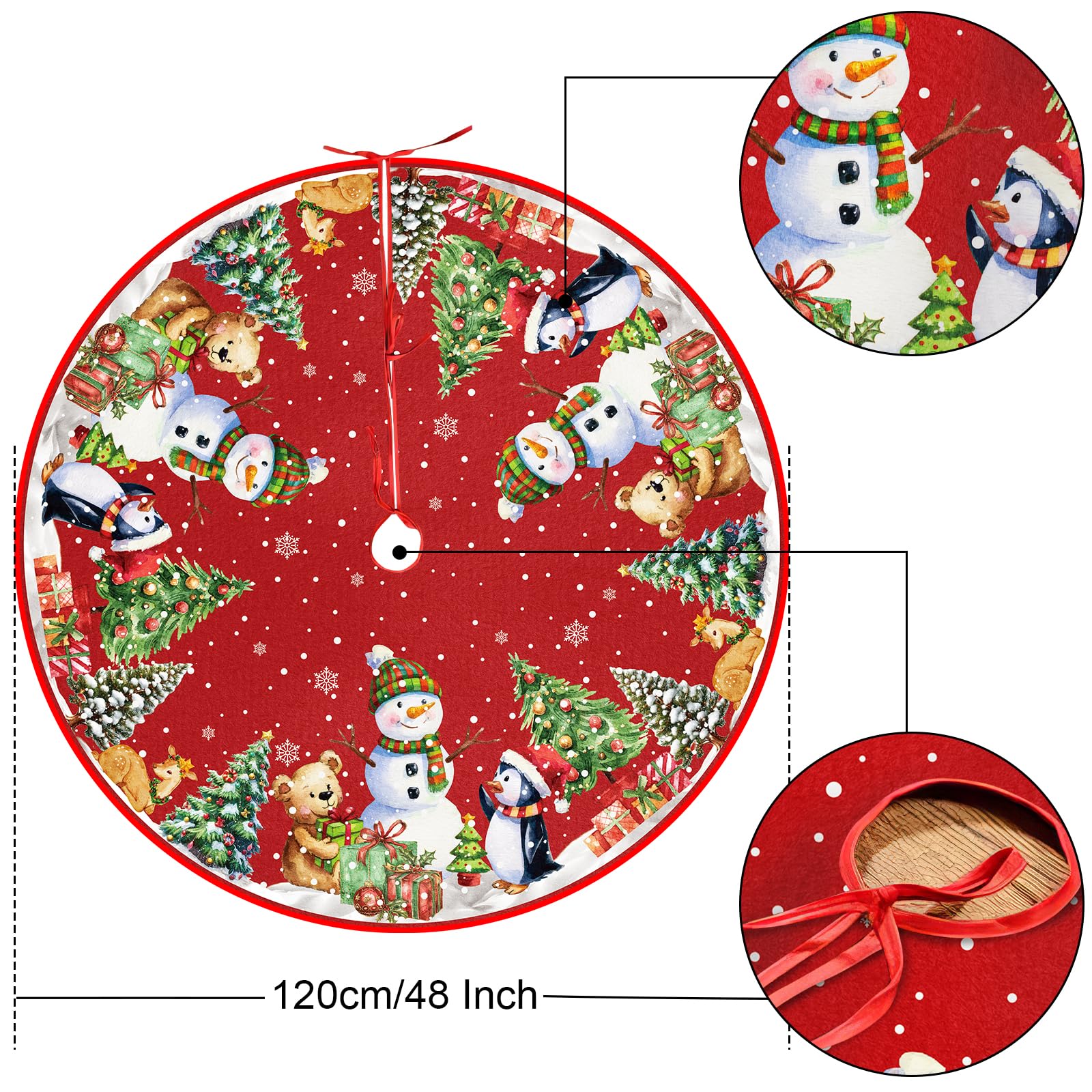 Elegant and festive design: This white and red Christmas tree skirt features a charming design with a tree and a snowman in classic red and green tones, adding a delightful accent to your Christmas holiday decoration. It is ideal for Christmas decor and creates a cozy and festive atmosphere under your Christmas tree.