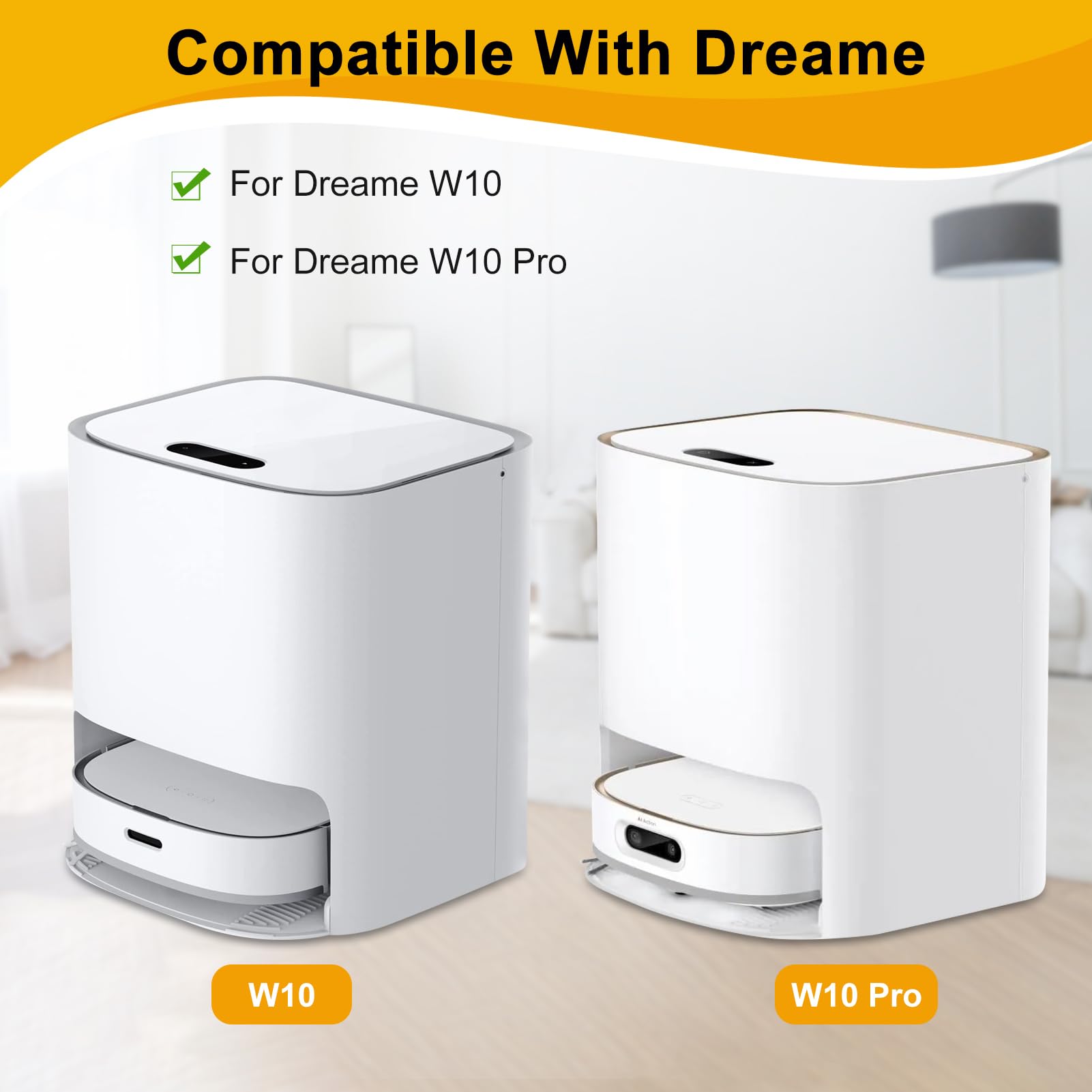 ["Applicable Model: Replacement parts for Dreame W10/ W10 PRO vacuum robot. High-quality materials, well-made, durable, and compatible with the equipment.\n\nCloth: The cloth has strong and long-lasting cleaning power, easily tackling various stains like footprints on the floor, juice residues, and oil stains. The replacement mop with its flexible, absorbent microfibers ensures shiny results. It even reaches hard-to-access areas.\n\nEfficient Cleaning: Microfiber & Water Stopper Mop absorb water and decontaminate, with a cloth for thorough cleaning. The pulled floor is as clean as wiping by hand with a cloth. The filter keeps the robot clean while reducing the entry of dust and other particles into the air you breathe.\n\nRemovable Mop Pad: One rip and a stick, easy to disassemble: Velcro mop, high adhesion, withstands repeated ripping. You only need to replace the mop pad in the future. No need to replace the mop pad holder.\n\nPackage Includes: 1 x Main brush, 6 x Side brush, 4 x Filter, 2 x Mop pads, 2 x Velcro mop pad holders"]