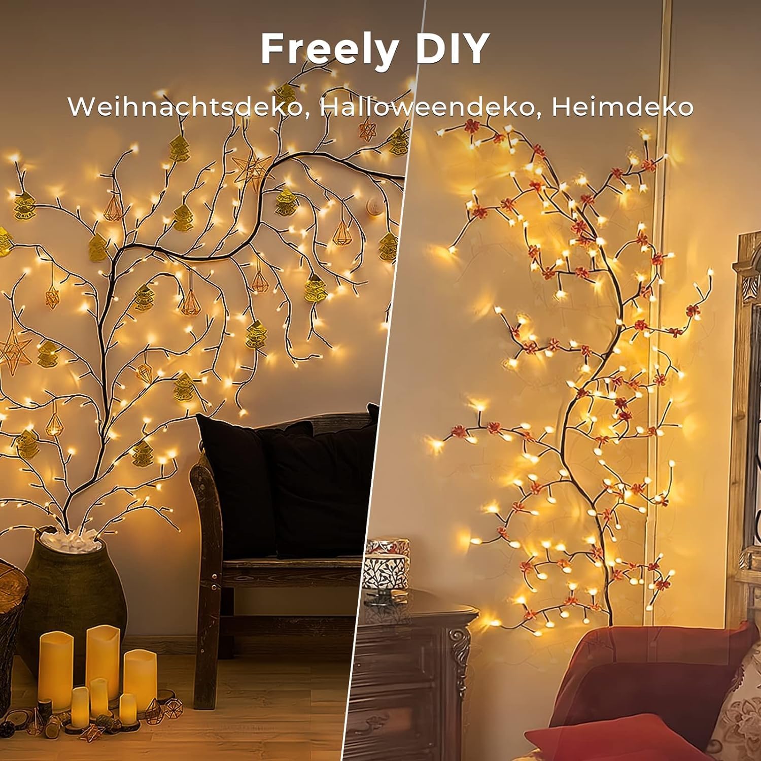 Ciskotu Willow Vine LED Fairy Lights with Plug, 144 LEDs Willow Vine Tree String Lights for room, LED Tree Wall Decor Living Room, Artificial Light Branches Bedroom Decor