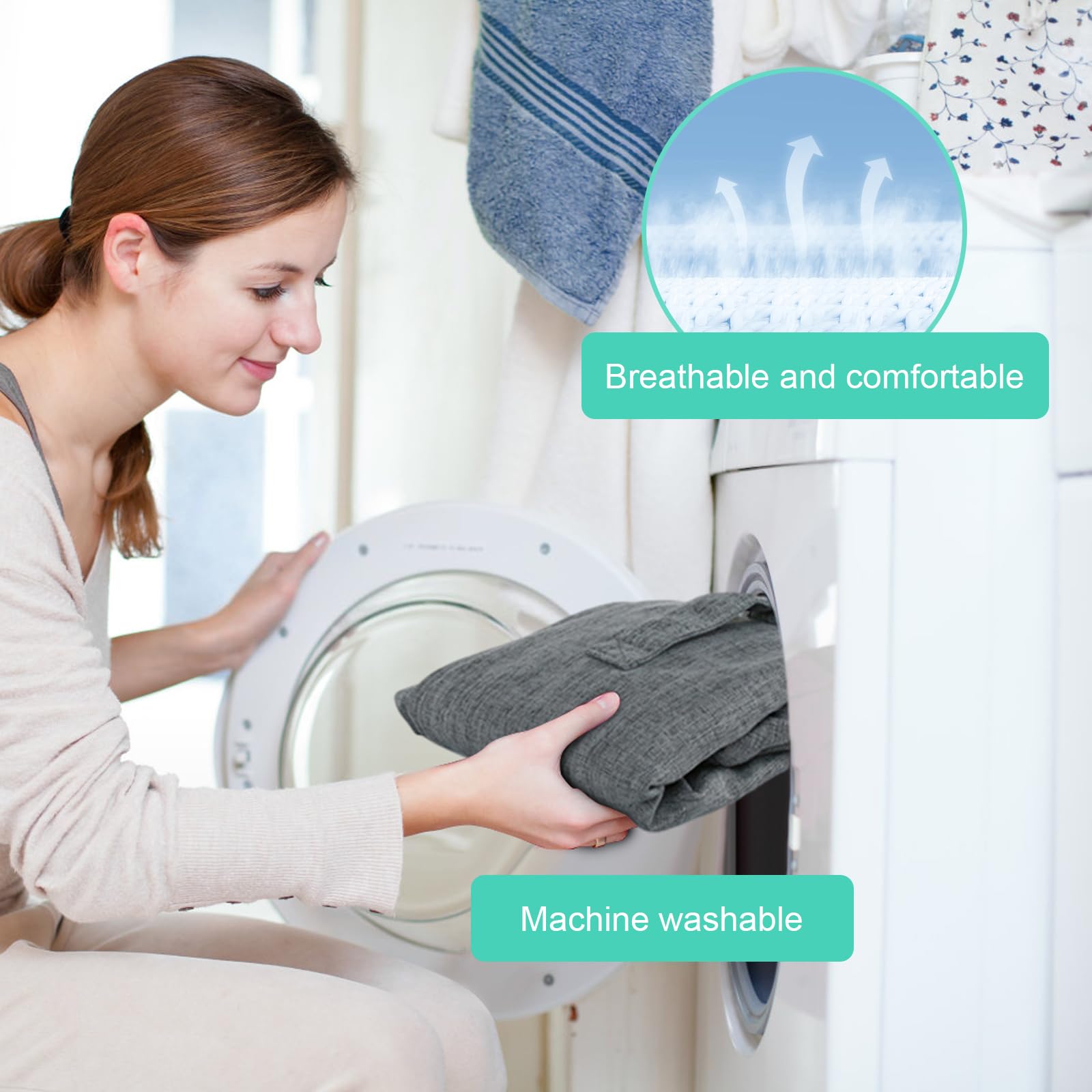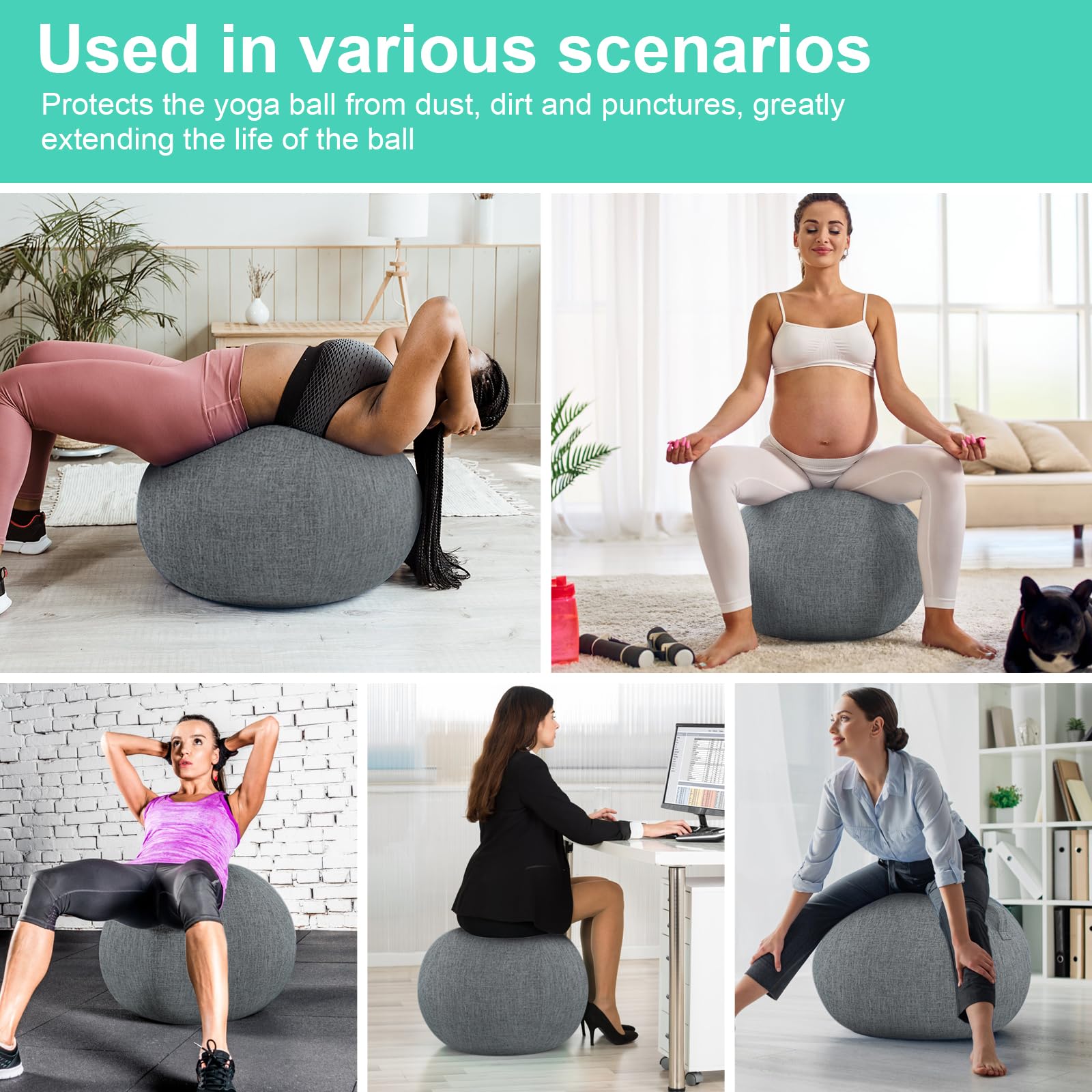 ["NON-SLIP MATERIAL: Chair covers for exercise ball are made of selected linen fabric, breathable/sweat-absorbent. Non-slip/durable, wrinkle-free/quick-fading/machine washable. Very easy to use. Note: This product is only a cover, ball not included.","ALTERNATIVE OFFICE CHAIR: With a diameter of about 65 cm, the chair cover can replace an office chair when used with the exercise ball. Suitable as a cover for yoga balls/training balls, etc. Ideal for office ball, gym, yoga, fitness, back and abdominal training, pregnancy exercises, or hundreds of low-impact exercises, therapy, and balance training.","PORTABLE HANDLE DESIGN: The handle design of the 65CM exercise ball cover makes it easy to carry or hang. The invisible zipper makes your exercise ball look more beautiful and convenient.","EASY TO USE AND CLEAN: Put the ball into the yoga ball cover before inflating and close the zipper after inflating. The balance ball cover is machine washable and can be washed in cold or warm water. Do not use a hard brush and do not rub too hard to avoid pilling of the fabric.","WARRANTY AND SERVICE: For 65 cm chair covers for exercise ball, please contact us by email if you have any questions! We will offer solutions as soon as possible."]