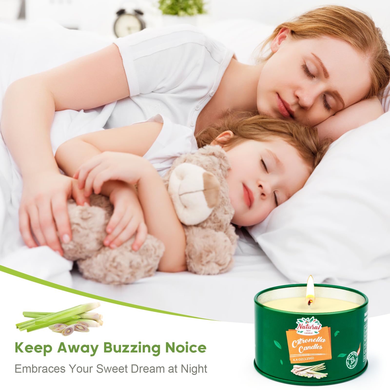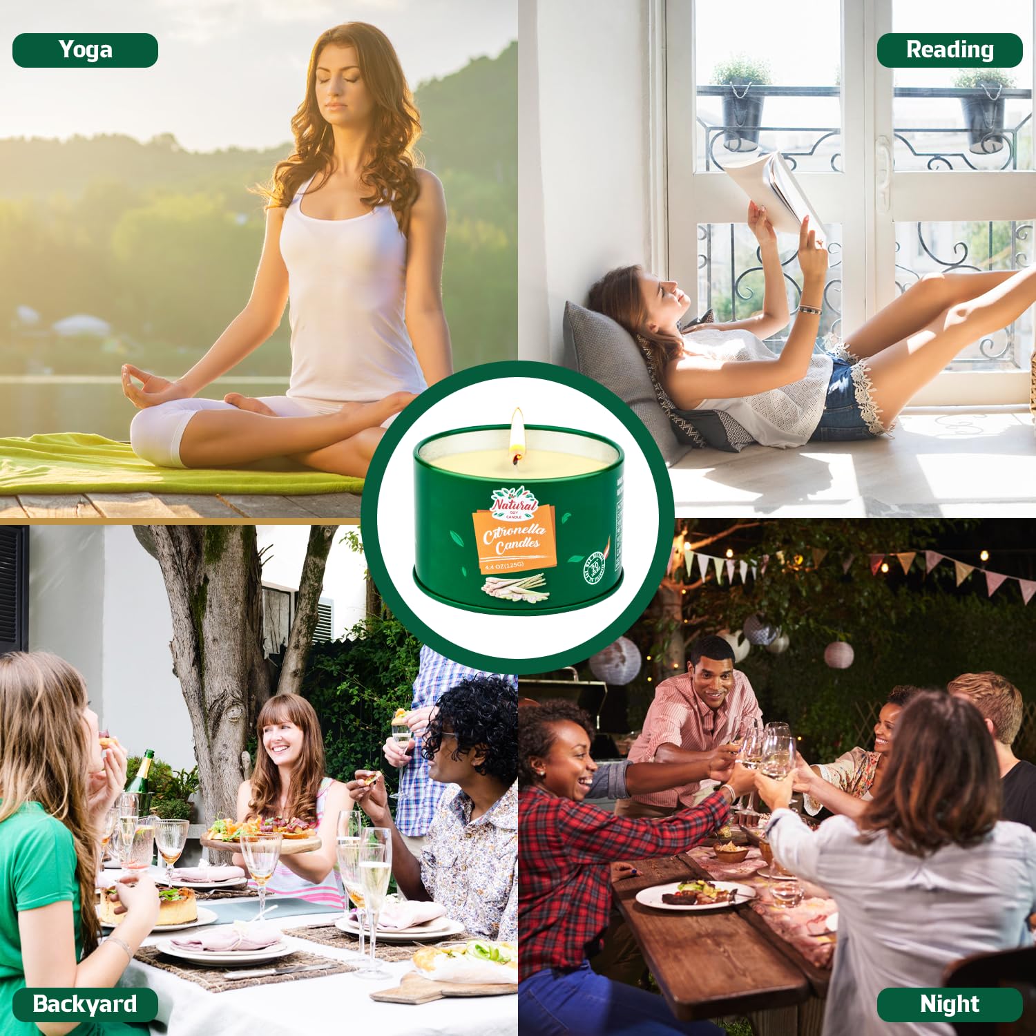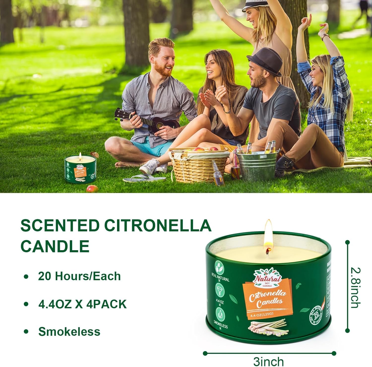 Citronella candles outdoor large, 4x125g citronella candle outside-120hrs burning time lemon candles garden, natural soy wax lemon scented candles set for camping patio picnics summer gift