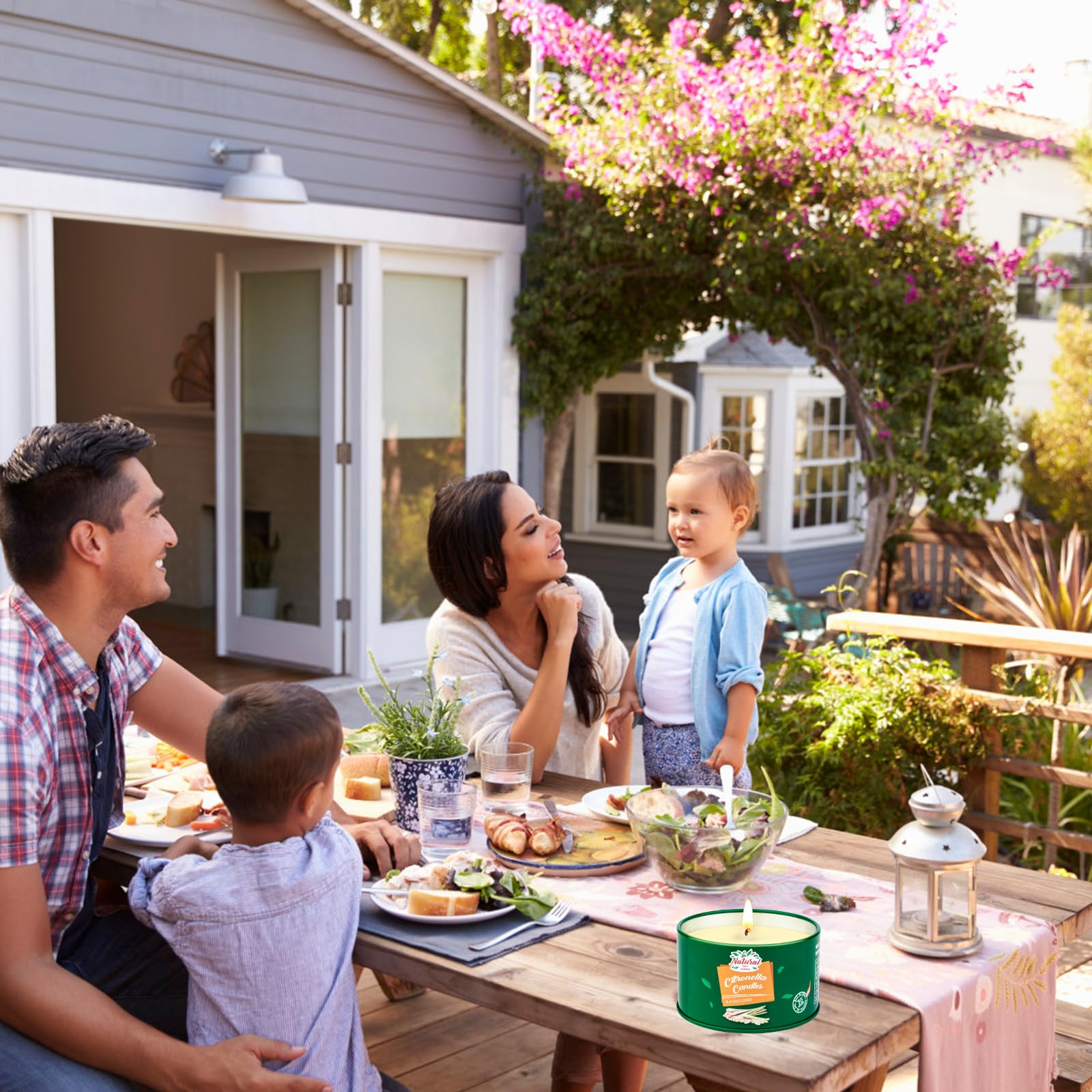 ["Citronella candle for indoor and outdoor use. Candlelight creates a pleasant atmosphere and tranquil outdoor dining experience. Whether reading, relaxing by the pool, camping, or spending time with loved ones, light up this large candle and enjoy quality time with your family.",