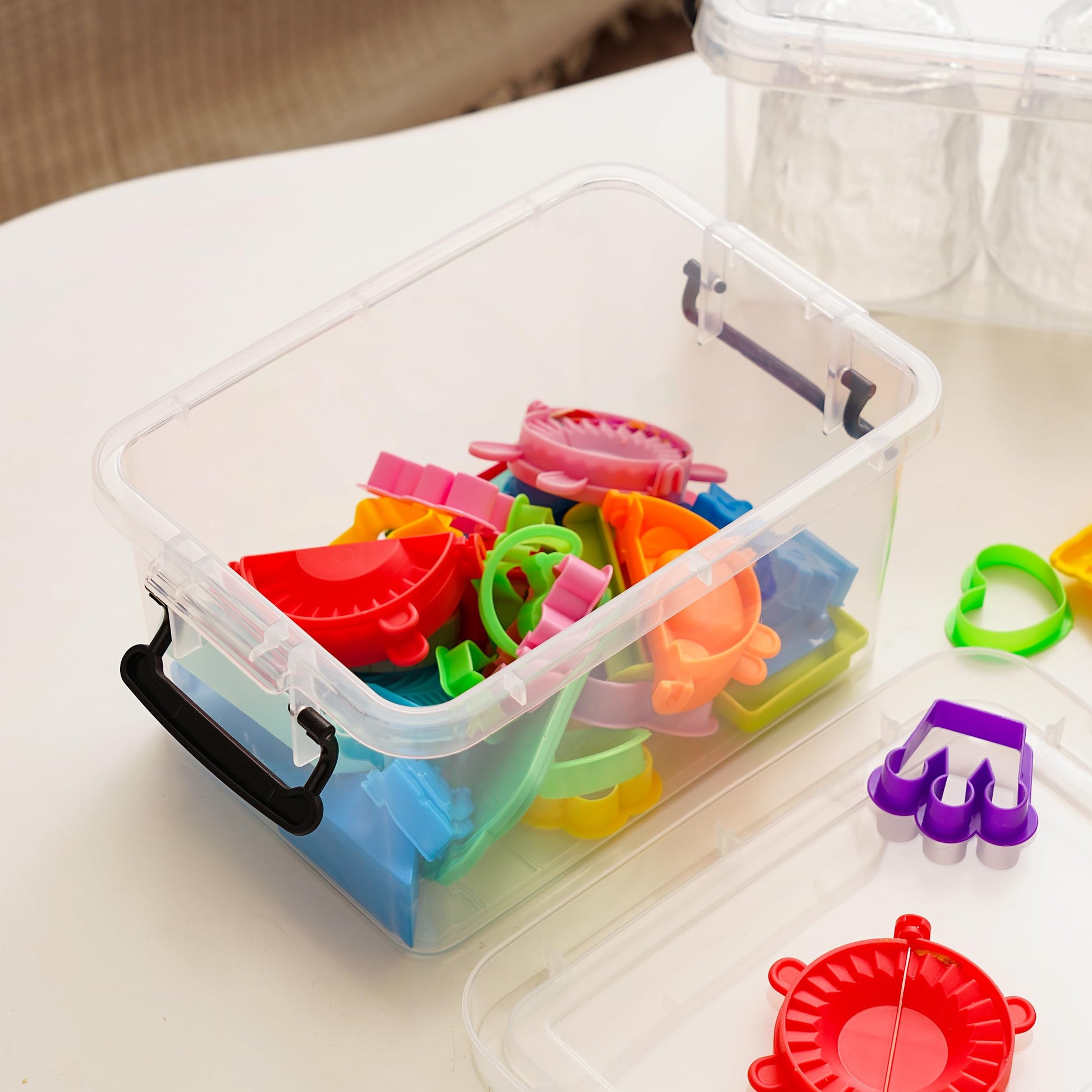 Citylife 6-piece set of 4L storage boxes with lids, small and stackable. Transparent with handle clips for small items. Elastic and durable plastic boxes for crafting supplies, measuring 21.5 x 11 x 15.2 cm.